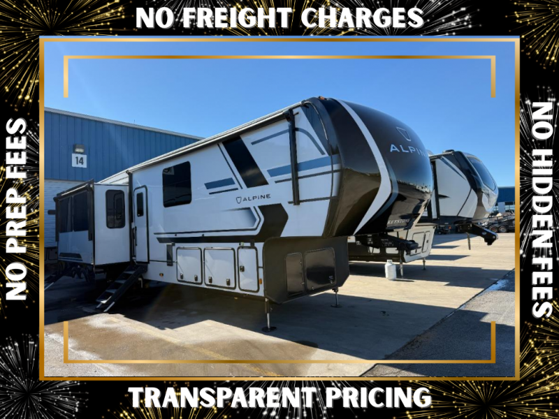 Luxury is not an option, it is a standard with each one of these Keystone RV Alpine fifth wheels! A 8' 4" wide body construction will create an open, residential feeling, and cutting-edge technology will provide a hassle-free camping experience. The Tru-Fit slide construction is more durable and minimizes motor structural stress, as well as resists leaking, and the Blade Pure airflow system provides residential comfort with its high-performance. Each fifth wheel includes designer flooring throughout, stunning solid wood cabinet doors, luxurious crown molding, and solid surface countertops in the kitchen. The exterior also includes an outside shower with hot and cold water, Lippert strut assisted SolidSteps, Hitch Vision with LED lighting, and many more conveniences!