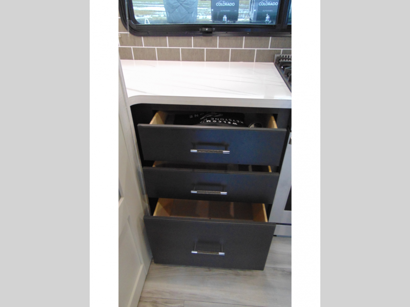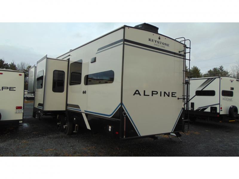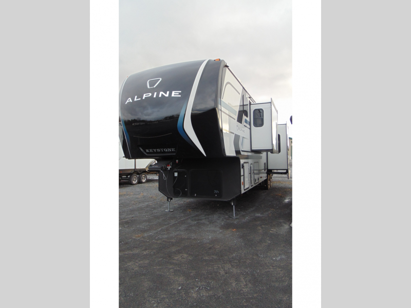 Luxury is not an option, it is a standard with each one of these Keystone RV Alpine fifth wheels! A 8' 4" wide body construction will create an open, residential feeling, and cutting-edge technology will provide a hassle-free camping experience. The Tru-Fit slide construction is more durable and minimizes motor structural stress, as well as resists leaking, and the Blade Pure airflow system provides residential comfort with its high-performance. Each fifth wheel includes designer flooring throughout, stunning solid wood cabinet doors, luxurious crown molding, and solid surface countertops in the kitchen. The exterior also includes an outside shower with hot and cold water, Lippert strut assisted SolidSteps, Hitch Vision with LED lighting, and many more conveniences!
