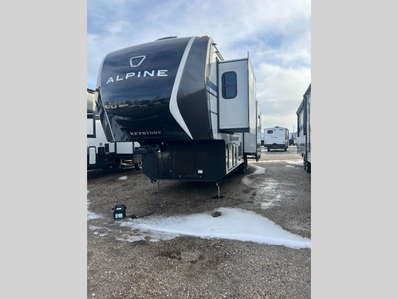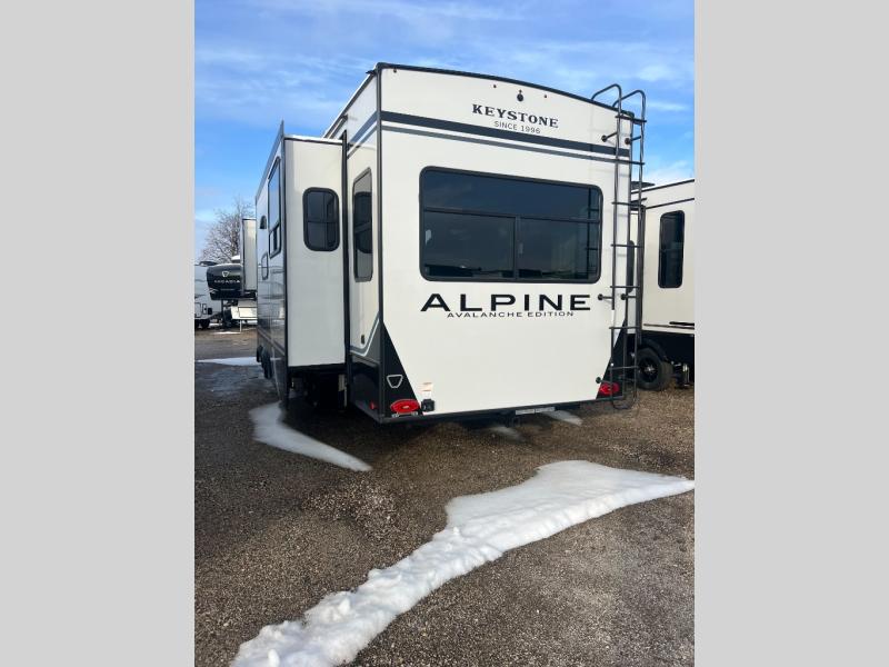 With any Keystone luxury Alpine Avalanche Edition fifth wheel, you will experience wide-body construction that allows you to stretch out and stay awhile during any season thanks to the Polar Pack All Season Protection that includes a heated and enclosed underbelly, an Astro foil reflective layer on the roof, front and rear walls, and two static attic vents, plus more! The interior offers hardwood slide out fascia with wood accents, designer upholstered window valances with custom wood window frame, plus your choice of modern interior design. There are many more Keystone exclusives, like the Tru-Fit slide construction, the in-floor heating ducts, KeyTV™, and much more to bring you a full-packed, luxury fifth wheel!