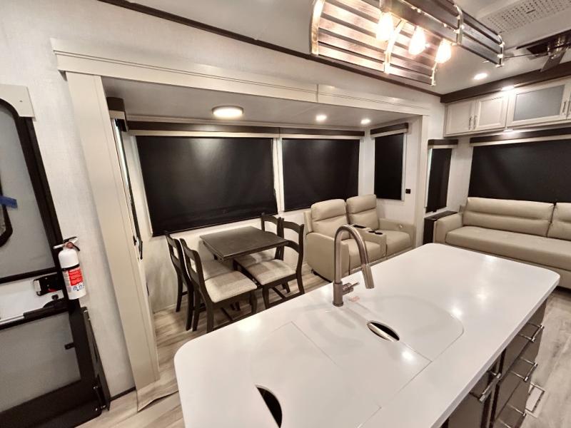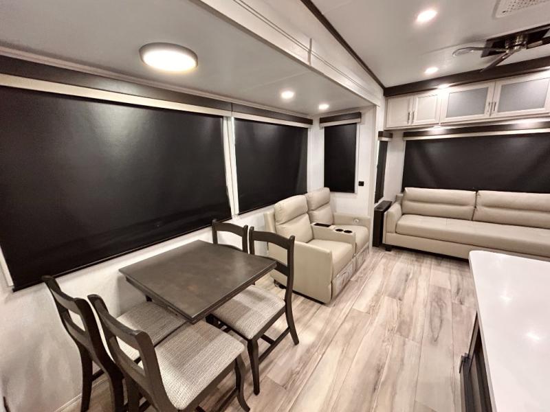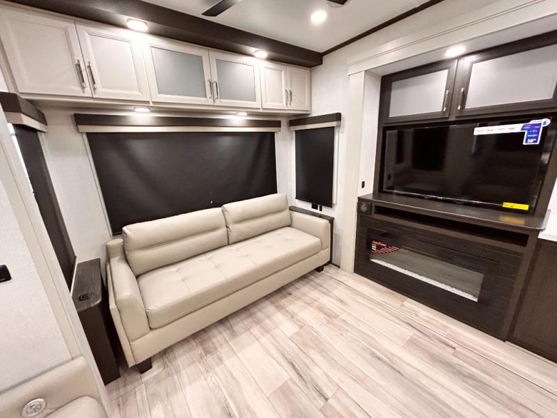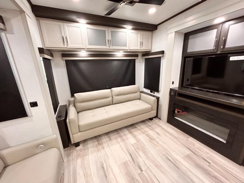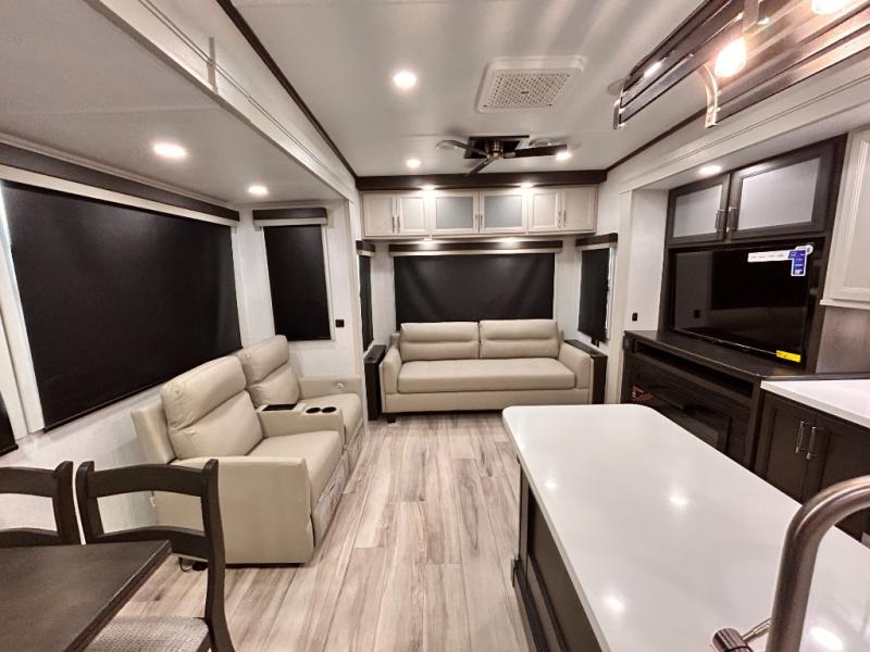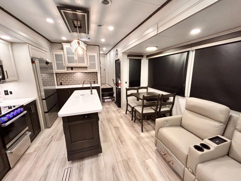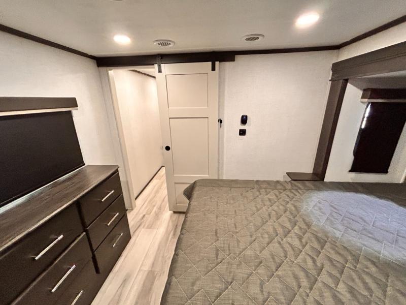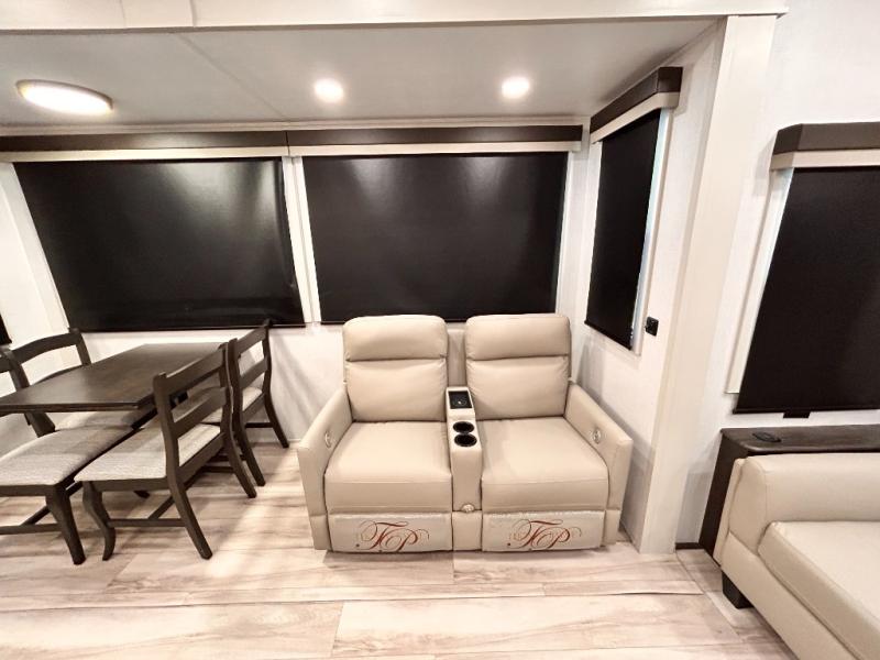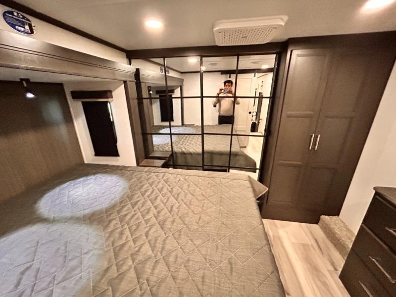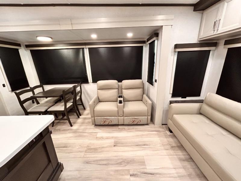 REAR LIVING / KING BED / POWER THEATER SEATING / SLIDE OUT AWNING TOPPERS / AUTO LEVELING / 220W SOLAR PANEL & INVERTER / 2ND AC!!