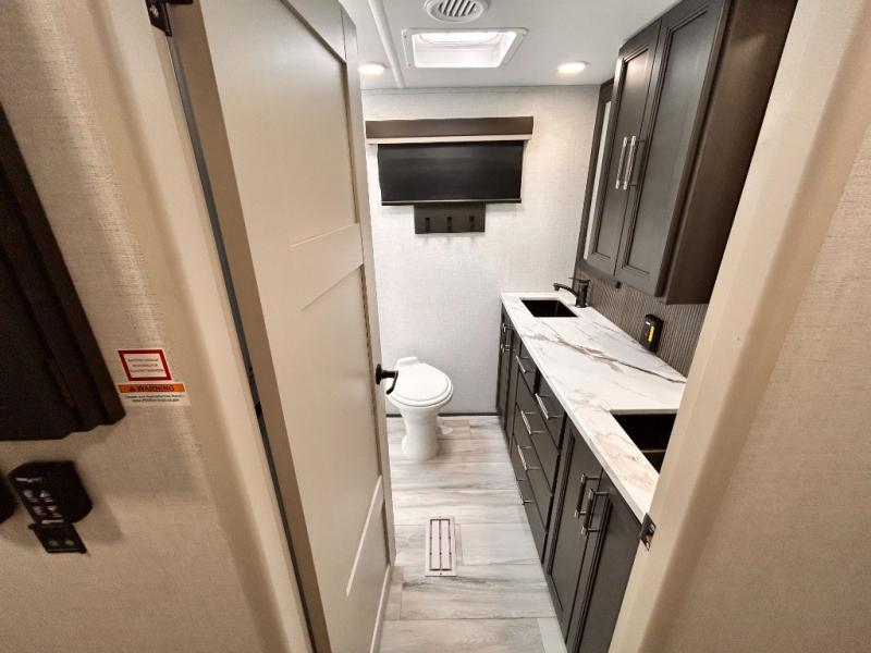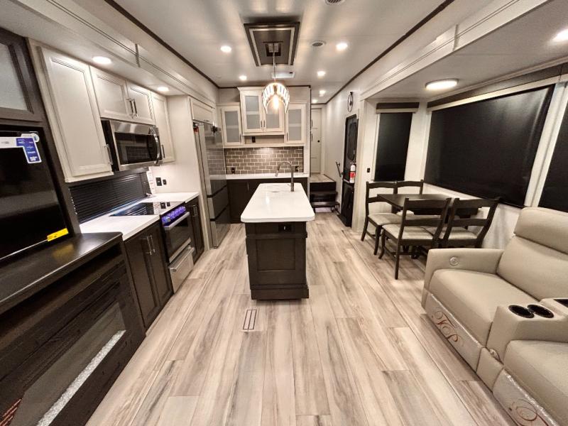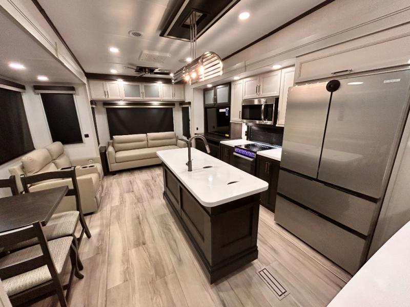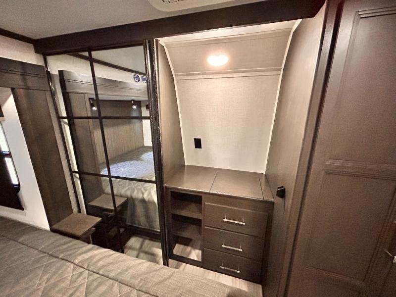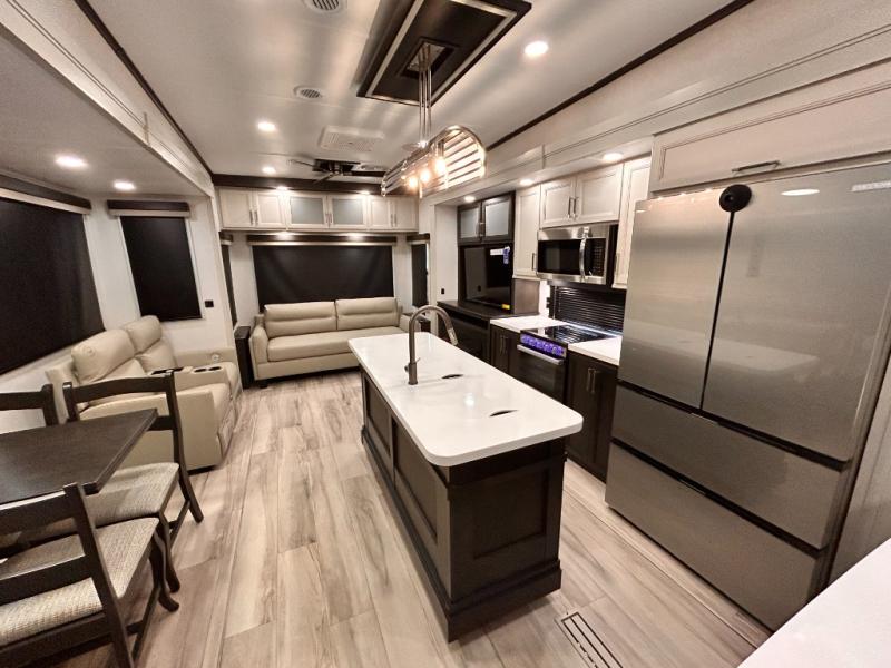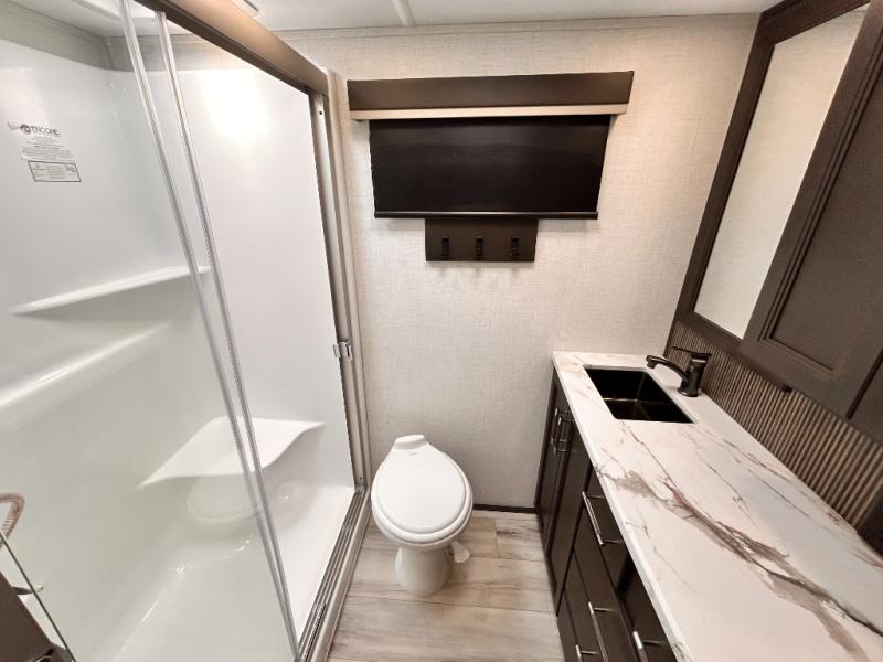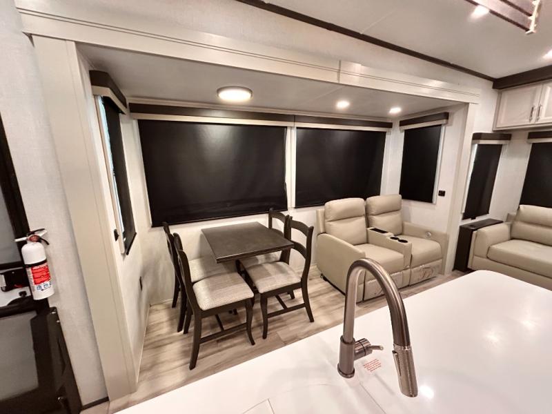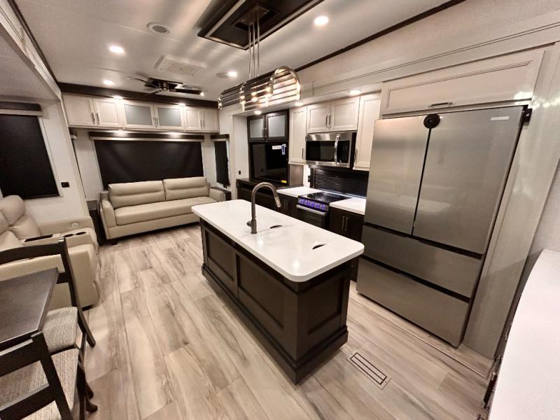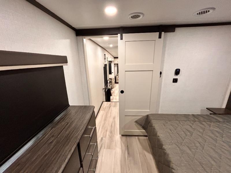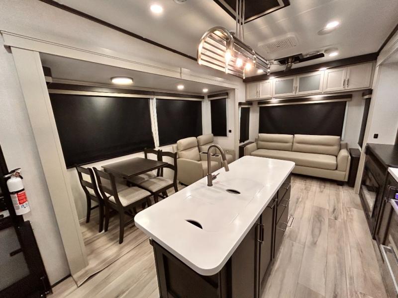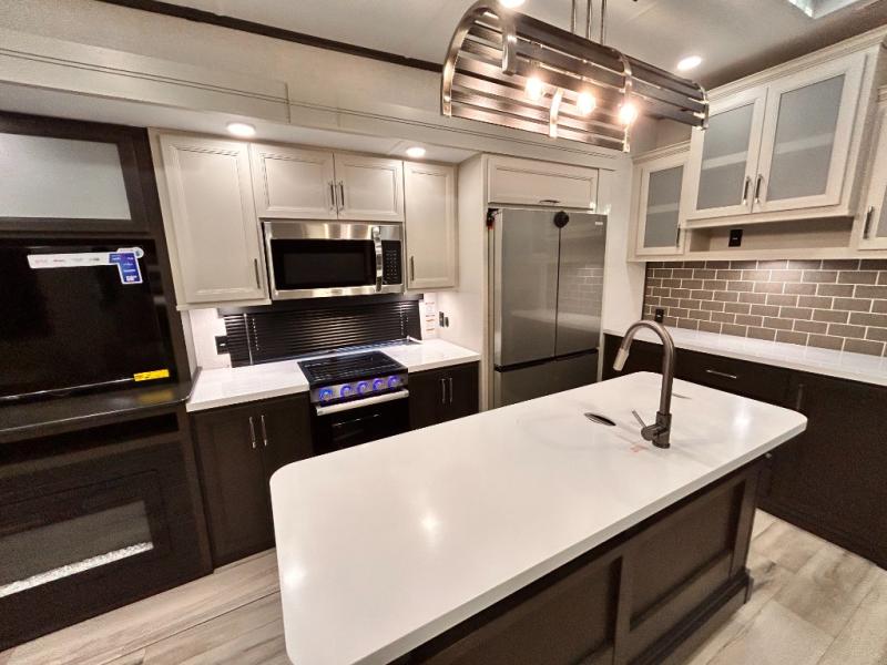 REAR LIVING / KING BED / POWER THEATER SEATING / SLIDE OUT AWNING TOPPERS / AUTO LEVELING / 220W SOLAR PANEL & INVERTER / 2ND AC!!