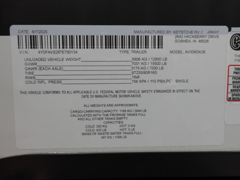 New 2026 Keystone RV Alpine Avalanche Edition 338GK Fifth Wheel