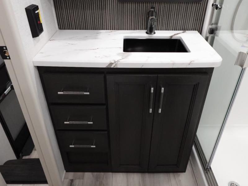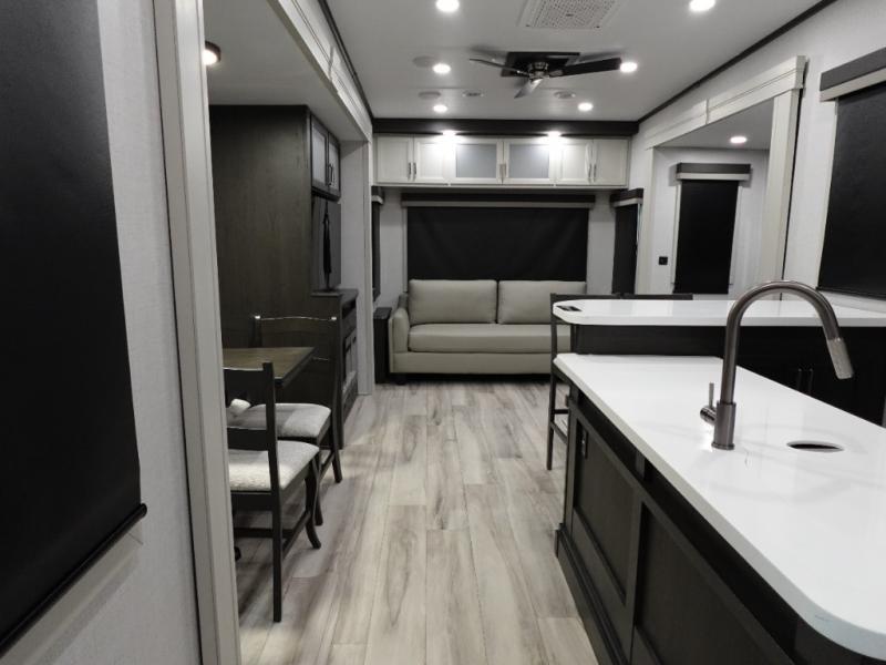 With any Keystone luxury Alpine Avalanche Edition fifth wheel, you will experience wide-body construction that allows you to stretch out and stay awhile during any season thanks to the Polar Pack All Season Protection that includes a heated and enclosed underbelly, an Astro foil reflective layer on the roof, front and rear walls, and two static attic vents, plus more! The interior offers hardwood slide out fascia with wood accents, designer upholstered window valances with custom wood window frame, plus your choice of modern interior design. There are many more Keystone exclusives, like the Tru-Fit slide construction, the in-floor heating ducts, KeyTV™, and much more to bring you a full-packed, luxury fifth wheel!