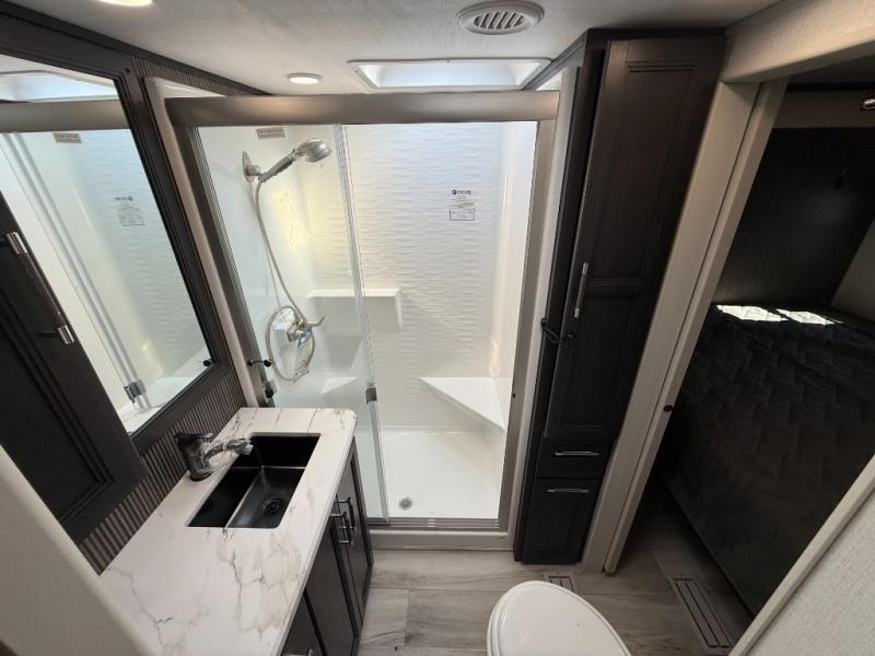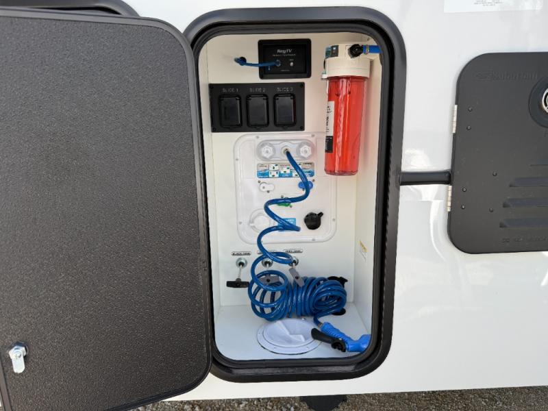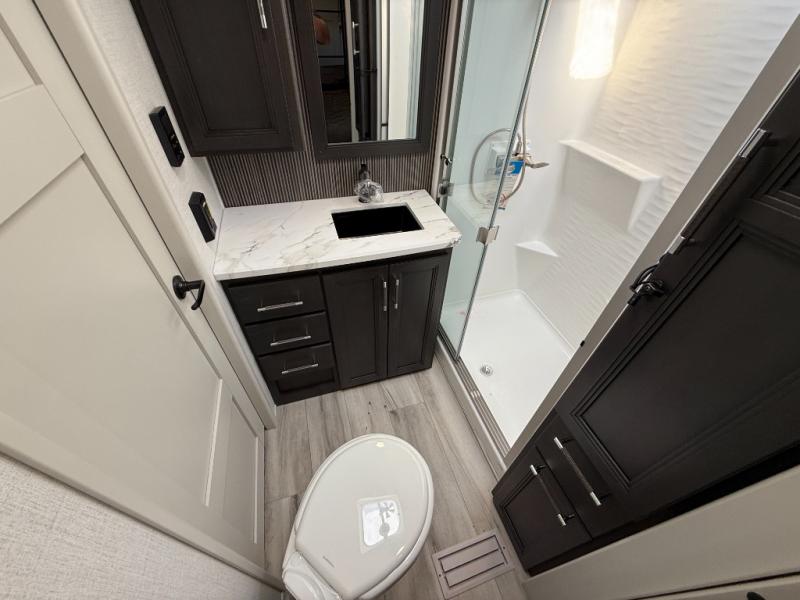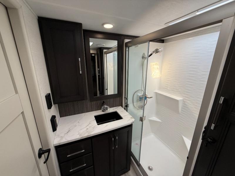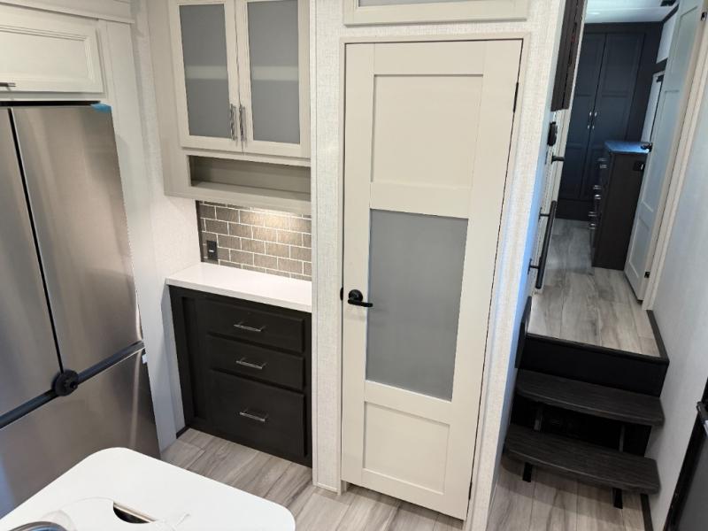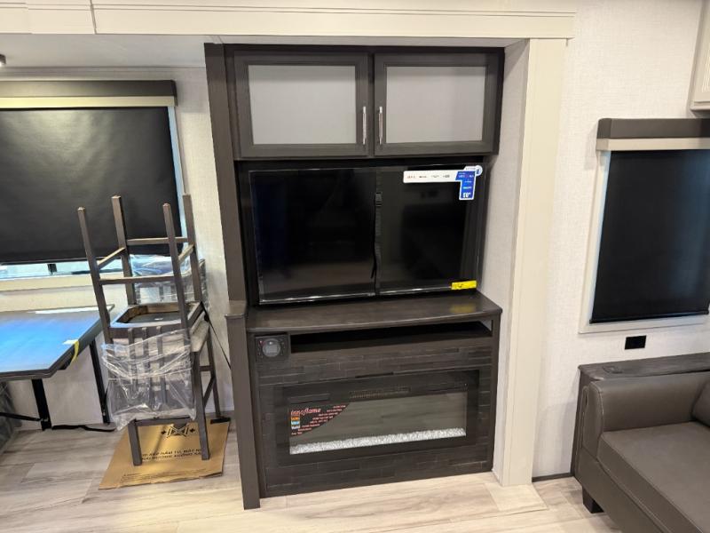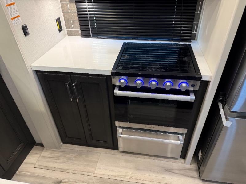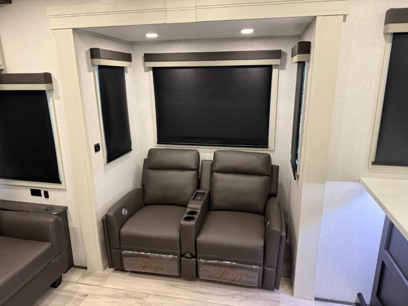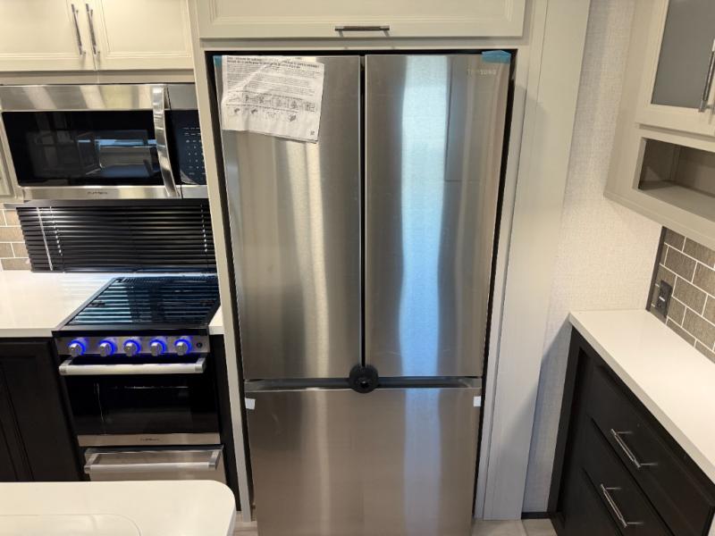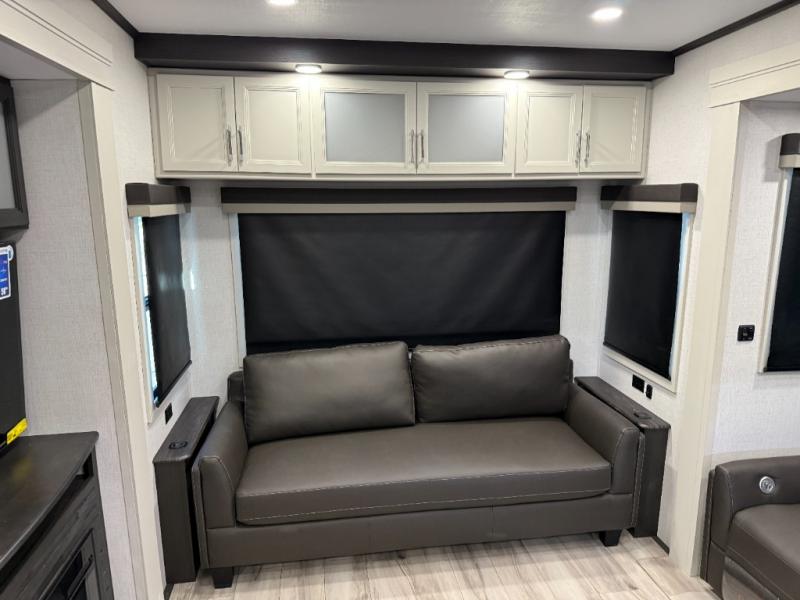 Our best selling couples fifth wheel! Outdoor kitchen, huge L-shaped bar, king bed, hydraulic auto leveling, and much more!