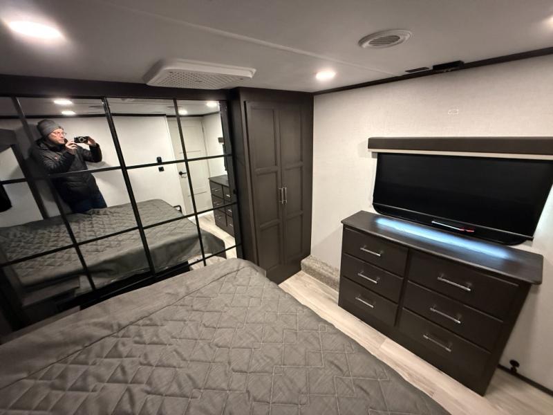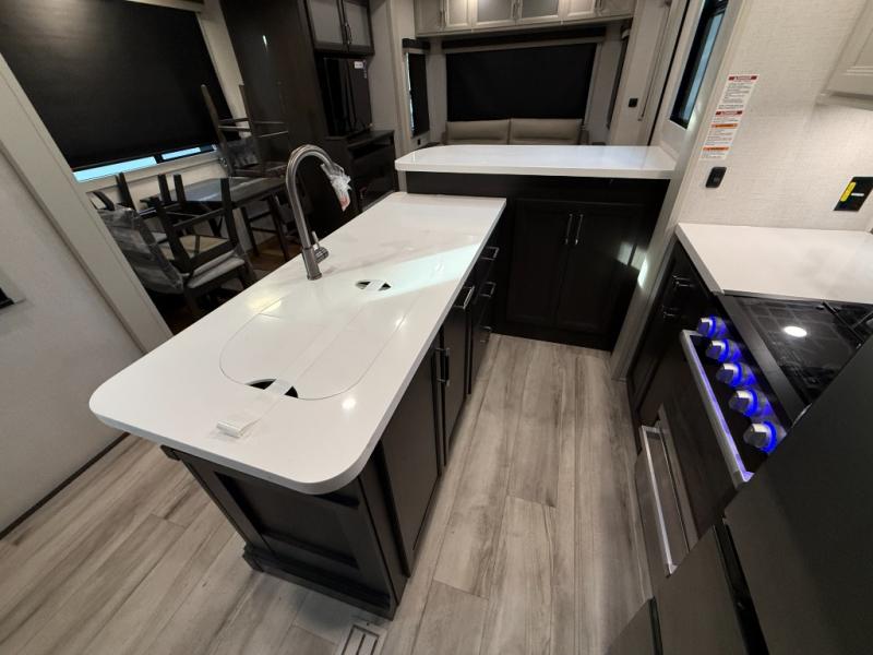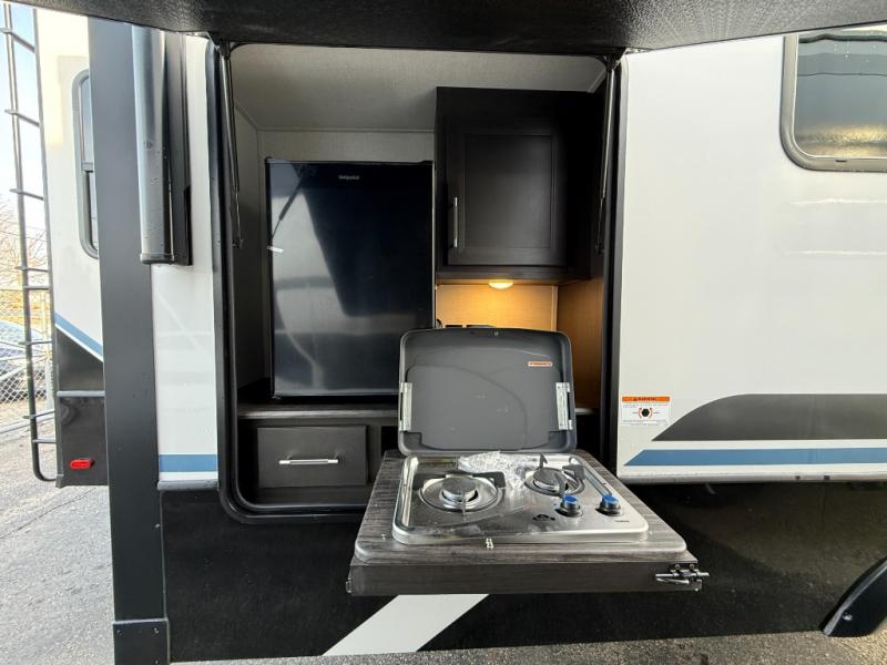 Our best selling couple fifth wheel! Rear living with huge L-shaped bar and outdoor kitchen!