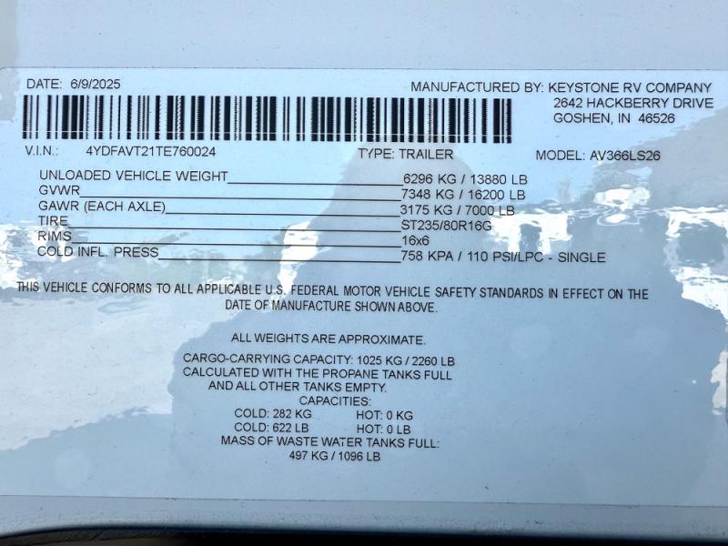 New 2026 Keystone RV Alpine Avalanche Edition 366LS Fifth Wheel