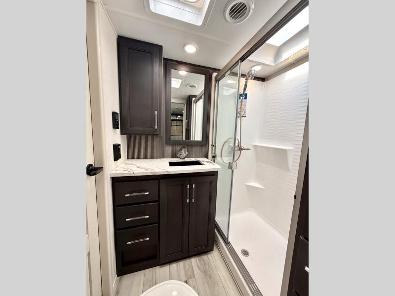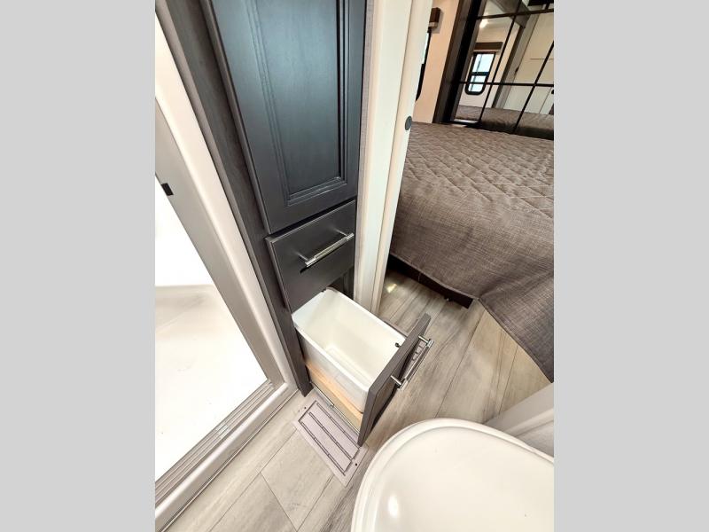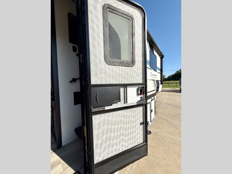With any Keystone luxury Alpine Avalanche Edition fifth wheel, you will experience wide-body construction that allows you to stretch out and stay awhile during any season thanks to the Polar Pack All Season Protection that includes a heated and enclosed underbelly, an Astro foil reflective layer on the roof, front and rear walls, and two static attic vents, plus more! The interior offers hardwood slide out fascia with wood accents, designer upholstered window valances with custom wood window frame, plus your choice of modern interior design. There are many more Keystone exclusives, like the Tru-Fit slide construction, the in-floor heating ducts, KeyTV™, and much more to bring you a full-packed, luxury fifth wheel!
