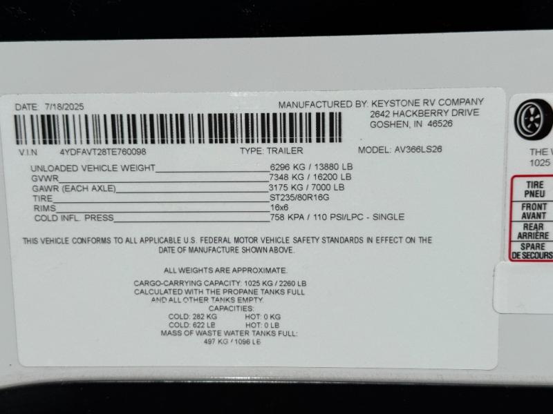 New 2026 Keystone RV Alpine Avalanche Edition 366LS Fifth Wheel