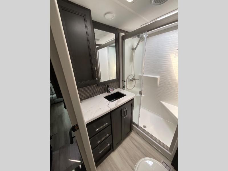 With any Keystone luxury Alpine Avalanche Edition fifth wheel, you will experience wide-body construction that allows you to stretch out and stay awhile during any season thanks to the Polar Pack All Season Protection that includes a heated and enclosed underbelly, an Astro foil reflective layer on the roof, front and rear walls, and two static attic vents, plus more! The interior offers hardwood slide out fascia with wood accents, designer upholstered window valances with custom wood window frame, plus your choice of modern interior design. There are many more Keystone exclusives, like the Tru-Fit slide construction, the in-floor heating ducts, KeyTV™, and much more to bring you a full-packed, luxury fifth wheel!