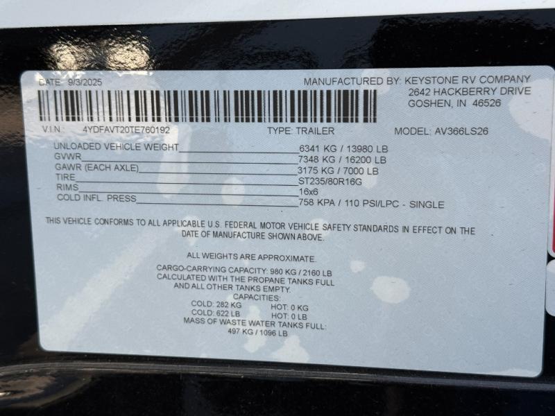 New 2026 Keystone RV Alpine Avalanche Edition 366LS Fifth Wheel