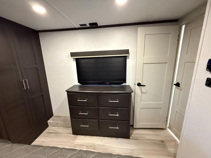 With any Keystone luxury Alpine Avalanche Edition fifth wheel, you will experience wide-body construction that allows you to stretch out and stay awhile during any season thanks to the Polar Pack All Season Protection that includes a heated and enclosed underbelly, an Astro foil reflective layer on the roof, front and rear walls, and two static attic vents, plus more! The interior offers hardwood slide out fascia with wood accents, designer upholstered window valances with custom wood window frame, plus your choice of modern interior design. There are many more Keystone exclusives, like the Tru-Fit slide construction, the in-floor heating ducts, KeyTV™, and much more to bring you a full-packed, luxury fifth wheel!