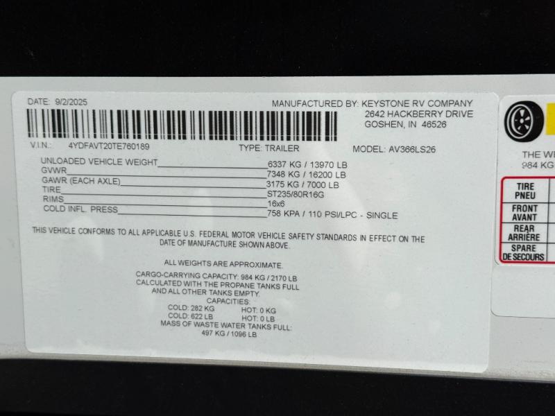 New 2026 Keystone RV Alpine Avalanche Edition 366LS Fifth Wheel