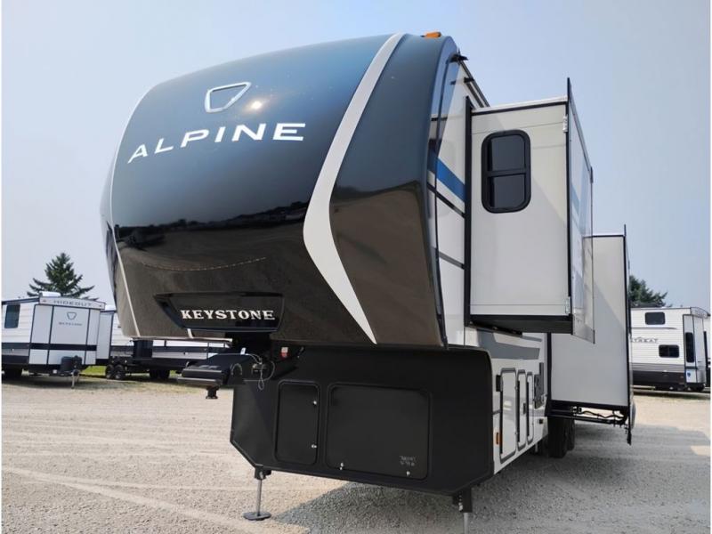 With any Keystone luxury Alpine Avalanche Edition fifth wheel, you will experience wide-body construction that allows you to stretch out and stay awhile during any season thanks to the Polar Pack All Season Protection that includes a heated and enclosed underbelly, an Astro foil reflective layer on the roof, front and rear walls, and two static attic vents, plus more! The interior offers hardwood slide out fascia with wood accents, designer upholstered window valances with custom wood window frame, plus your choice of modern interior design. There are many more Keystone exclusives, like the Tru-Fit slide construction, the in-floor heating ducts, KeyTV™, and much more to bring you a full-packed, luxury fifth wheel!