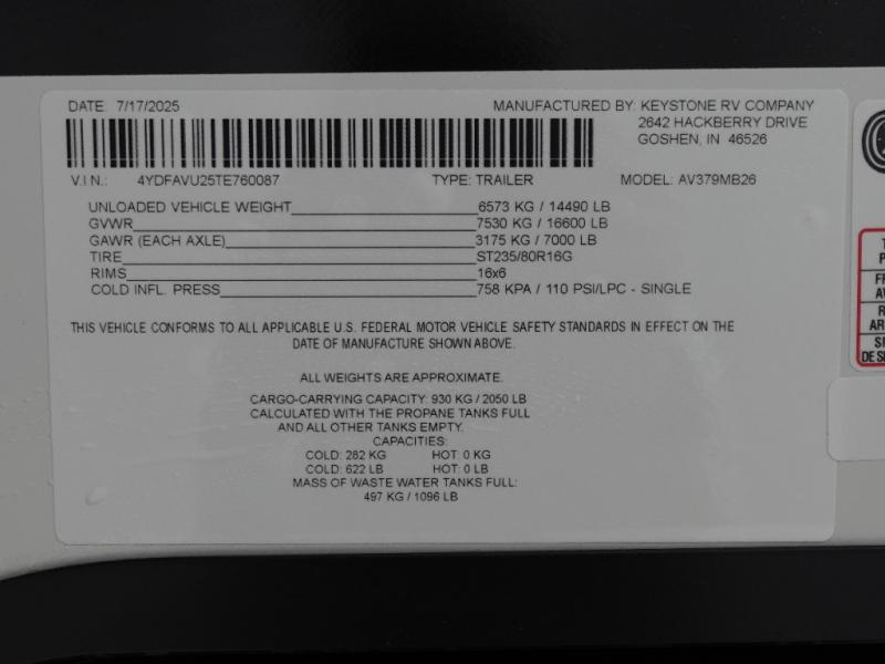 New 2026 Keystone RV Alpine Avalanche Edition 379MB Fifth Wheel