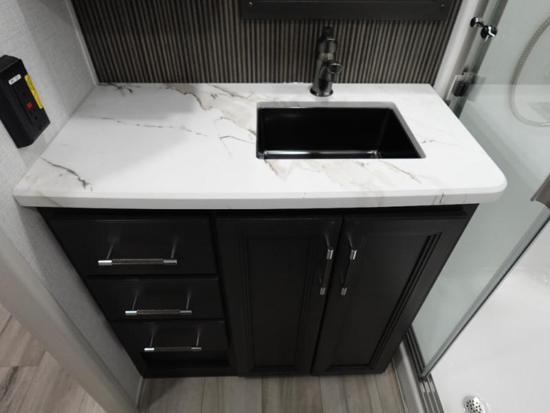 With any Keystone luxury Alpine Avalanche Edition fifth wheel, you will experience wide-body construction that allows you to stretch out and stay awhile during any season thanks to the Polar Pack All Season Protection that includes a heated and enclosed underbelly, an Astro foil reflective layer on the roof, front and rear walls, and two static attic vents, plus more! There are many more Keystone exclusives, like the Tru-Fit slide construction, the in-floor heating ducts, KeyTV™, and much more to bring you a full-packed, luxury fifth wheel!