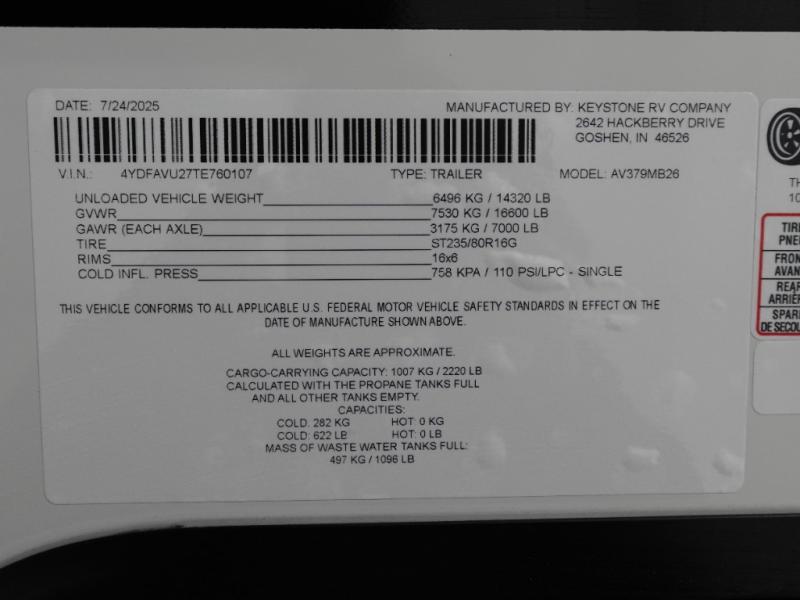 | VIN | 4YDFAVU27TE760107 |