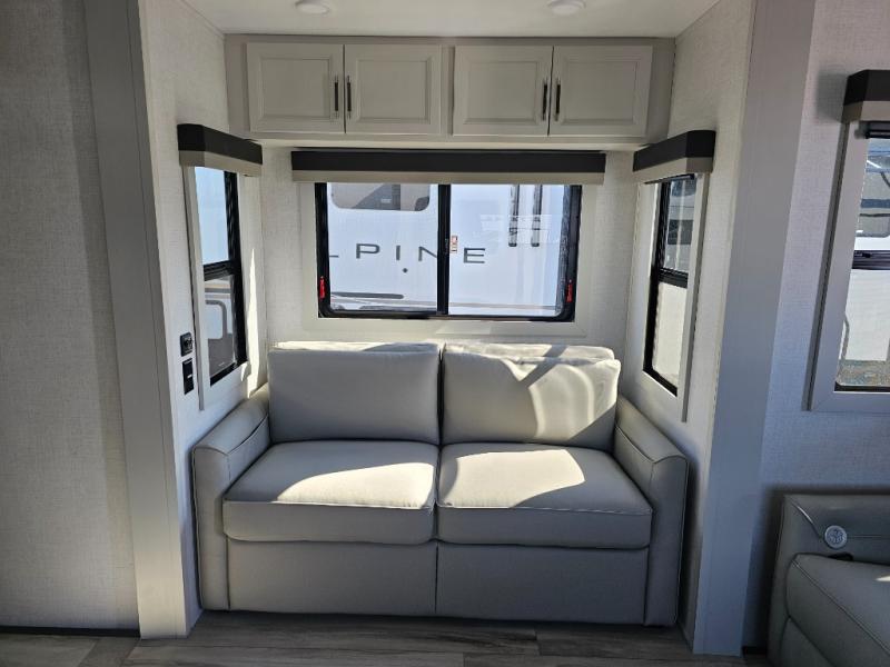 With any Keystone luxury Alpine Avalanche Edition fifth wheel, you will experience wide-body construction that allows you to stretch out and stay awhile during any season thanks to the Polar Pack All Season Protection that includes a heated and enclosed underbelly, an Astro foil reflective layer on the roof, front and rear walls, and two static attic vents, plus more! The interior offers hardwood slide out fascia with wood accents, designer upholstered window valances with custom wood window frame, plus your choice of modern interior design. There are many more Keystone exclusives, like the Tru-Fit slide construction, the in-floor heating ducts, KeyTV™, and much more to bring you a full-packed, luxury fifth wheel!