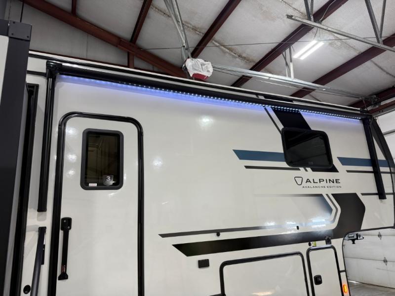 With any Keystone luxury Alpine Avalanche Edition fifth wheel, you will experience wide-body construction that allows you to stretch out and stay awhile during any season thanks to the Polar Pack All Season Protection that includes a heated and enclosed underbelly, an Astro foil reflective layer on the roof, front and rear walls, and two static attic vents, plus more! The interior offers hardwood slide out fascia with wood accents, designer upholstered window valances with custom wood window frame, plus your choice of modern interior design. There are many more Keystone exclusives, like the Tru-Fit slide construction, the in-floor heating ducts, KeyTV™, and much more to bring you a full-packed, luxury fifth wheel!