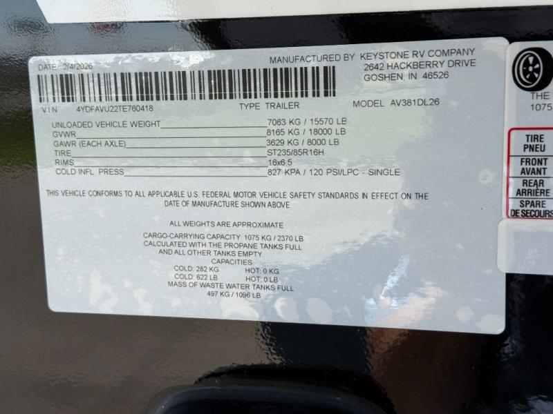 Keystone Alpine Avalanche Edition fifth wheel 381DL highlights:
