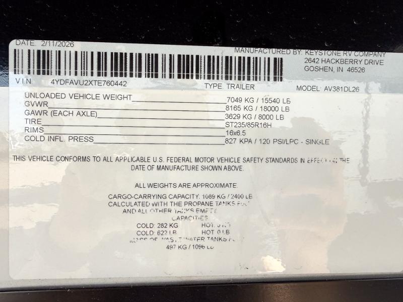 | VIN | 4YDFAVU2XTE760442 |