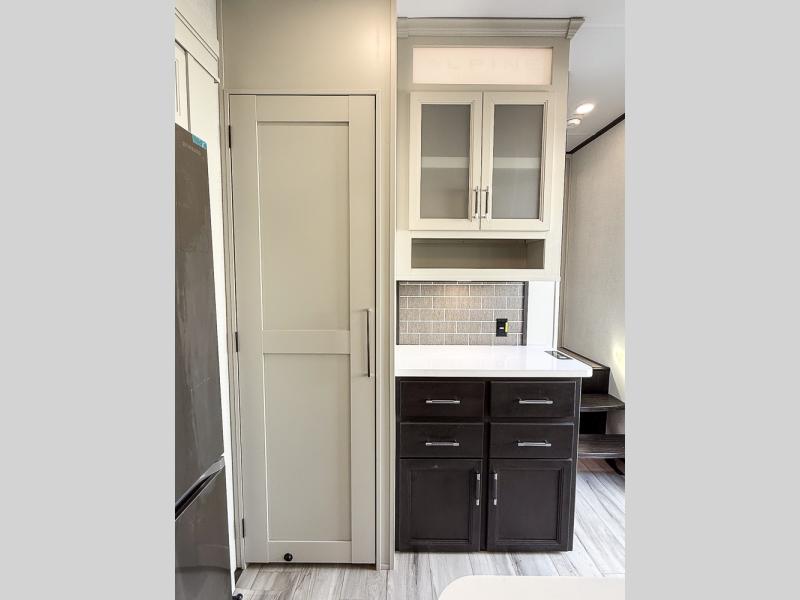 With any Keystone luxury Alpine Avalanche Edition fifth wheel, you will experience wide-body construction that allows you to stretch out and stay awhile during any season thanks to the Polar Pack All Season Protection that includes a heated and enclosed underbelly, an Astro foil reflective layer on the roof, front and rear walls, and two static attic vents, plus more! The interior offers hardwood slide out fascia with wood accents, designer upholstered window valances with custom wood window frame, plus your choice of modern interior design. There are many more Keystone exclusives, like the Tru-Fit slide construction, the in-floor heating ducts, KeyTV™, and much more to bring you a full-packed, luxury fifth wheel!
