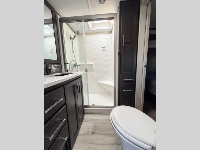 With any Keystone luxury Alpine Avalanche Edition fifth wheel, you will experience wide-body construction that allows you to stretch out and stay awhile during any season thanks to the Polar Pack All Season Protection that includes a heated and enclosed underbelly, an Astro foil reflective layer on the roof, front and rear walls, and two static attic vents, plus more! The interior offers hardwood slide out fascia with wood accents, designer upholstered window valances with custom wood window frame, plus your choice of modern interior design. There are many more Keystone exclusives, like the Tru-Fit slide construction, the in-floor heating ducts, KeyTV™, and much more to bring you a full-packed, luxury fifth wheel!