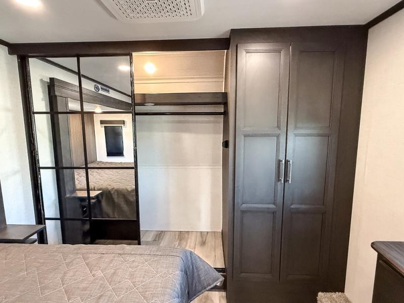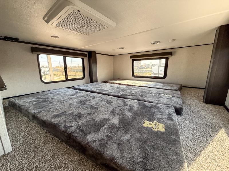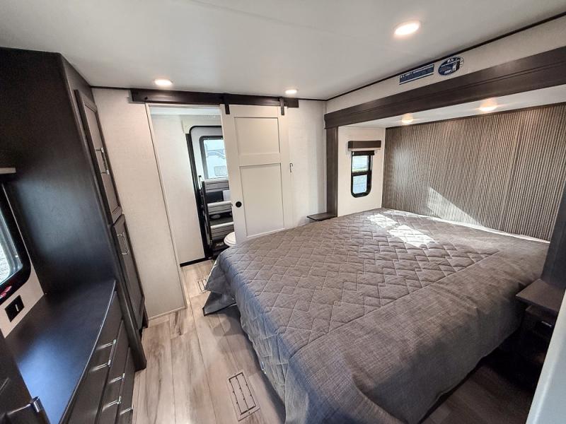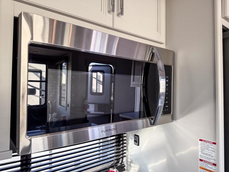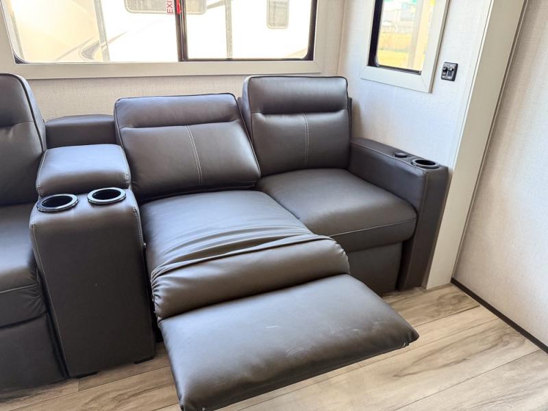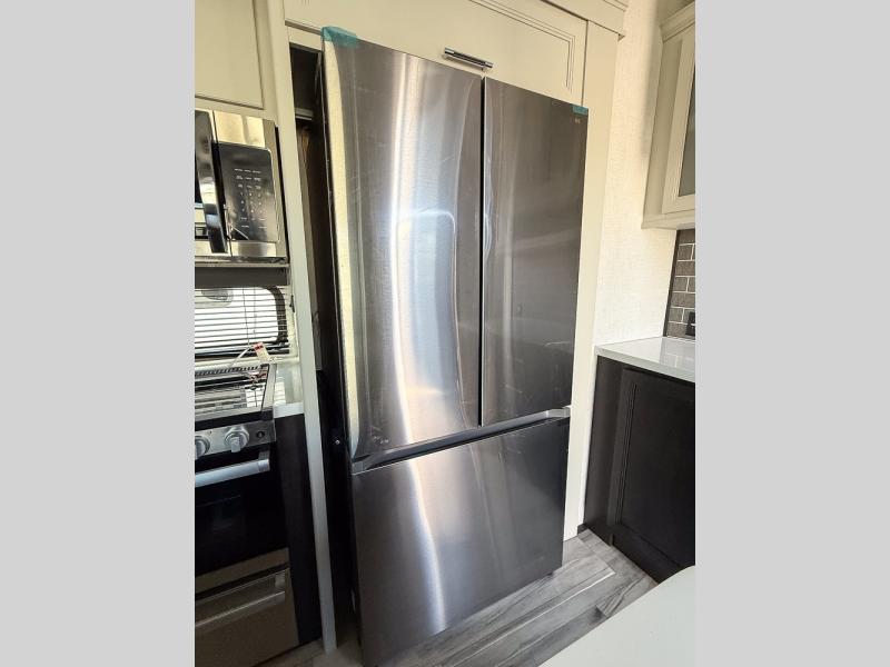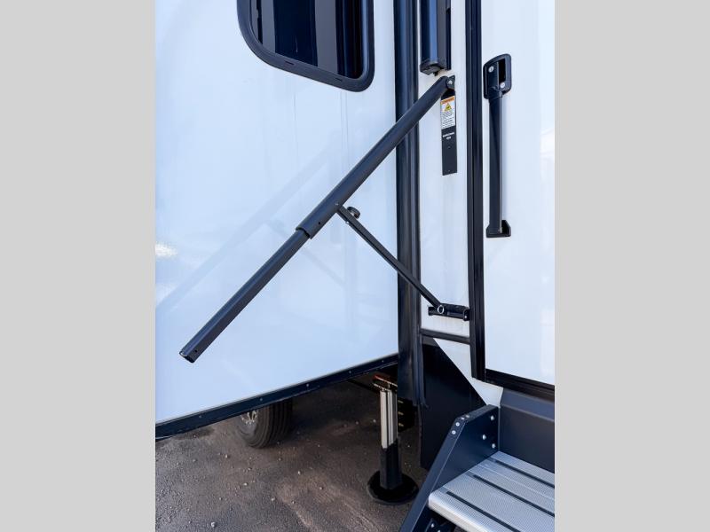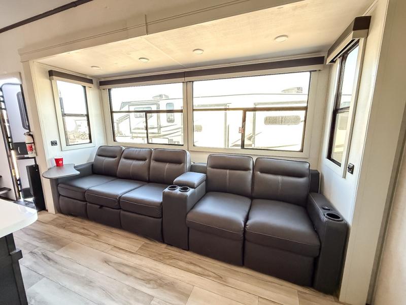 Get ready for family fun in this fifth wheel offering a front master bedroom with a king-size bed slide, plus a second master bedroom for your guests! The second bedroom includes a queen-size bed slide, a loft above the bedroom that sleeps three more, plus a rear full bathroom including a unique rear entry/exit door. And both entrances include the LCl SolidStep. The main living and kitchen area offers dual opposing slides and include theater seating, a free standing dinette, a fireplace, a center island and full kitchen amenities to feed your entire crew.