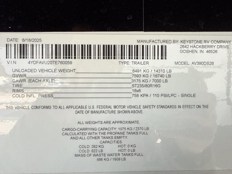 New 2026 Keystone RV Alpine Avalanche Edition 390DS Fifth Wheel