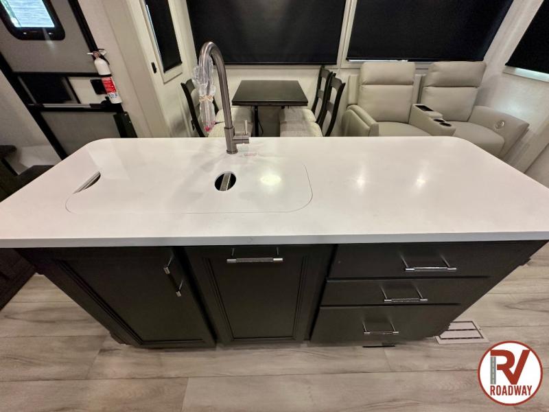 With any Keystone luxury Alpine Avalanche Edition fifth wheel, you will experience wide-body construction that allows you to stretch out and stay awhile during any season thanks to the Polar Pack All Season Protection that includes a heated and enclosed underbelly, an Astro foil reflective layer on the roof, front and rear walls, and two static attic vents, plus more! The interior offers hardwood slide out fascia with wood accents, designer upholstered window valances with custom wood window frame, plus your choice of modern interior design. There are many more Keystone exclusives, like the Tru-Fit slide construction, the in-floor heating ducts, KeyTV™, and much more to bring you a full-packed, luxury fifth wheel!