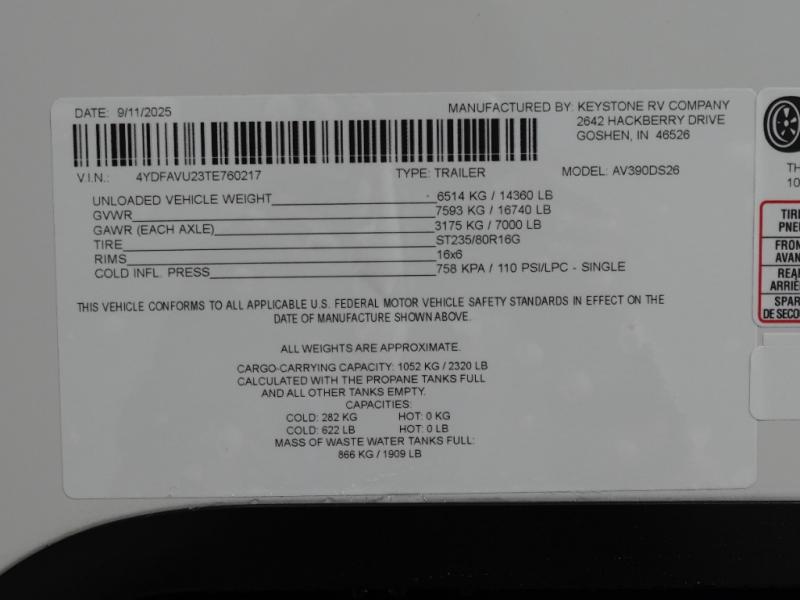 New 2026 Keystone RV Alpine Avalanche Edition 390DS Fifth Wheel