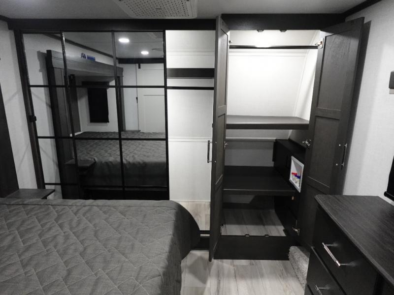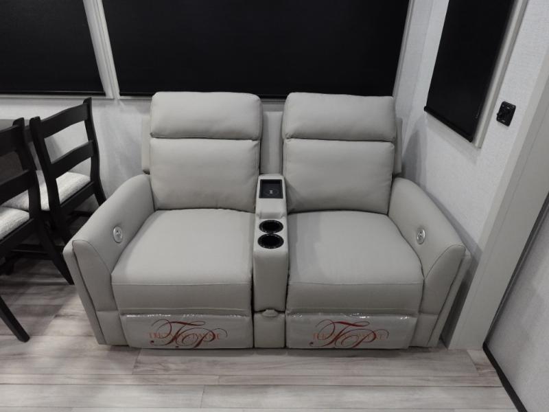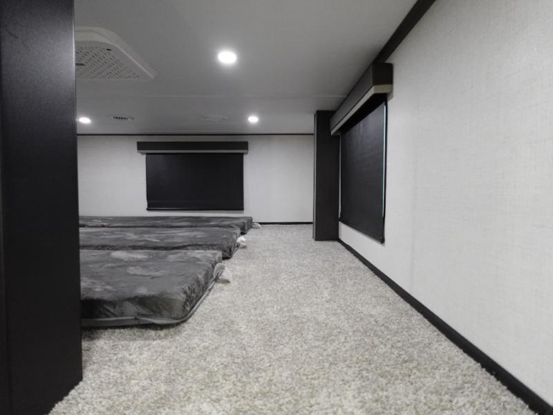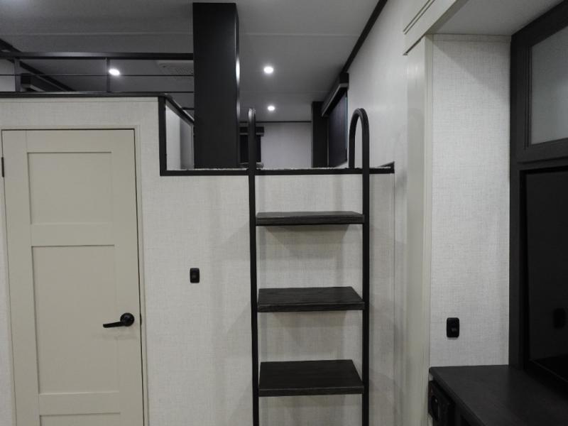 Get ready for family fun in this fifth wheel offering a front master bedroom with a king-size bed slide, plus a second master bedroom for your guests! The second bedroom includes a queen-size bed slide, a loft above the bedroom that sleeps three more, plus a rear full bathroom including a unique rear entry/exit door. And both entrances include the LCl SolidStep. The main living and kitchen area offers dual opposing slides and include theater seating, a free standing dinette, a fireplace, a center island and full kitchen amenities to feed your entire crew.