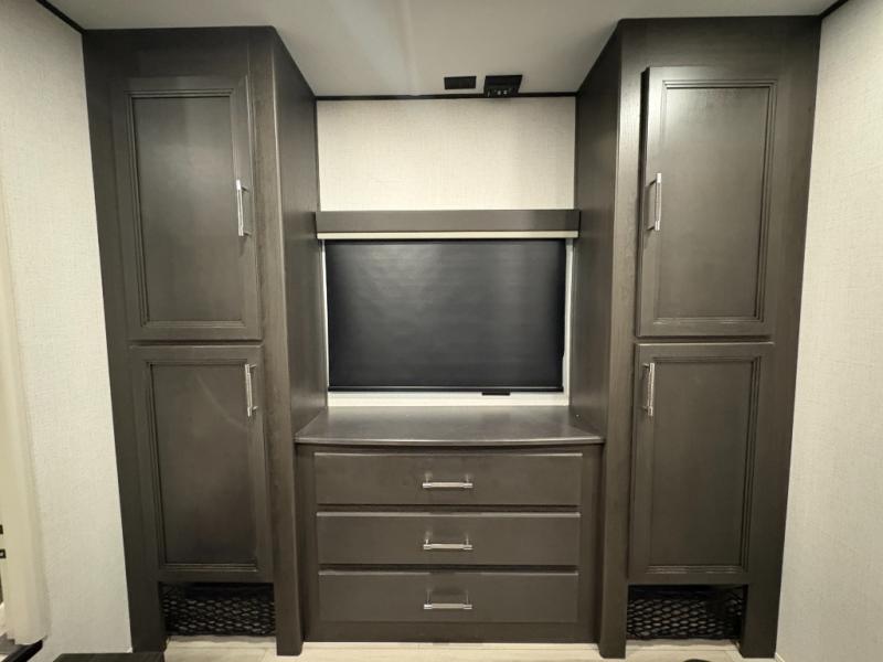 With any Keystone luxury Alpine Avalanche Edition fifth wheel, you will experience wide-body construction that allows you to stretch out and stay awhile during any season thanks to the Polar Pack All Season Protection that includes a heated and enclosed underbelly, an Astro foil reflective layer on the roof, front and rear walls, and two static attic vents, plus more! The interior offers hardwood slide out fascia with wood accents, designer upholstered window valances with custom wood window frame, plus your choice of modern interior design. There are many more Keystone exclusives, like the Tru-Fit slide construction, the in-floor heating ducts, KeyTV™, and much more to bring you a full-packed, luxury fifth wheel!