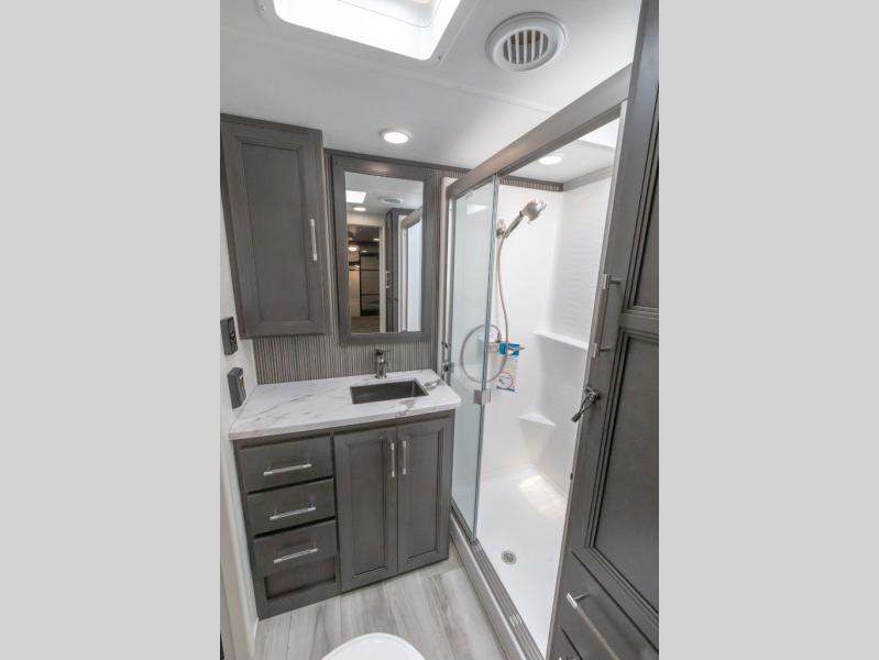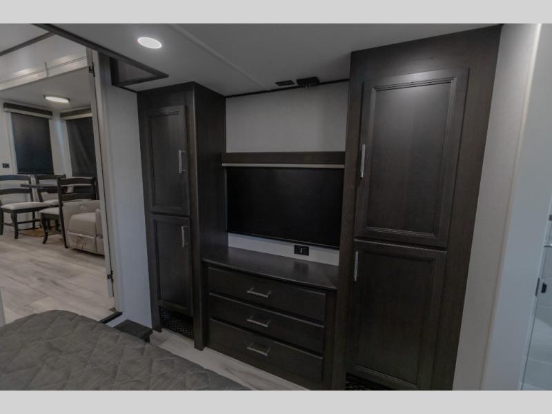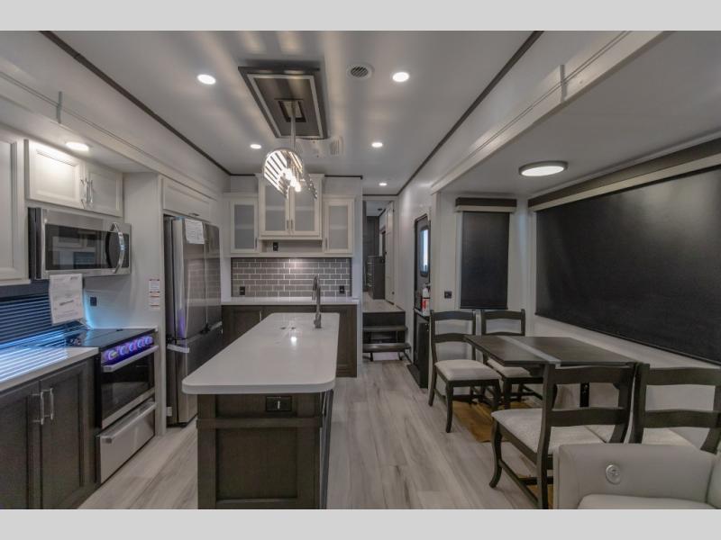 With any Keystone luxury Alpine Avalanche Edition fifth wheel, you will experience wide-body construction that allows you to stretch out and stay awhile during any season thanks to the Polar Pack All Season Protection that includes a heated and enclosed underbelly, an Astro foil reflective layer on the roof, front and rear walls, and two static attic vents, plus more! The interior offers hardwood slide out fascia with wood accents, designer upholstered window valances with custom wood window frame, plus your choice of modern interior design. There are many more Keystone exclusives, like the Tru-Fit slide construction, the in-floor heating ducts, KeyTV™, and much more to bring you a full-packed, luxury fifth wheel!