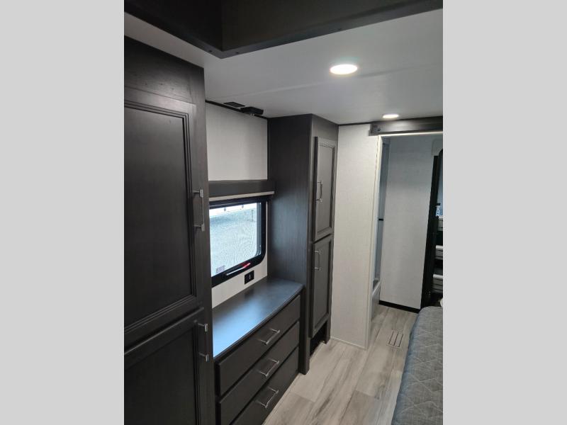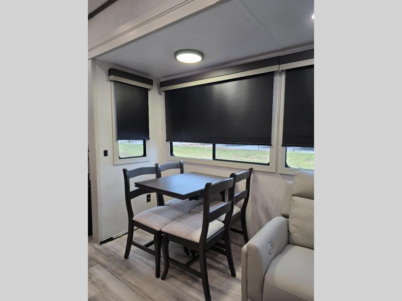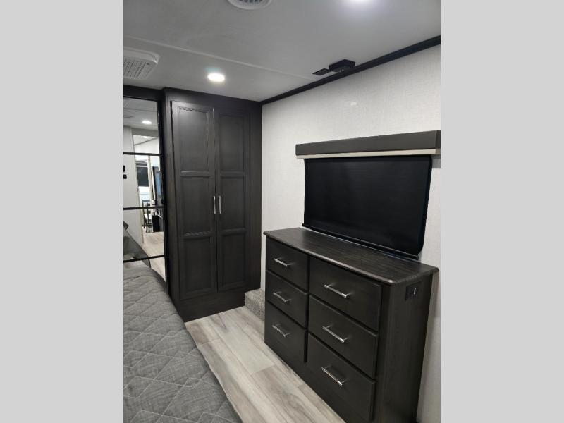 With any Keystone luxury Alpine Avalanche Edition fifth wheel, you will experience wide-body construction that allows you to stretch out and stay awhile during any season thanks to the Polar Pack All Season Protection that includes a heated and enclosed underbelly, an Astro foil reflective layer on the roof, front and rear walls, and two static attic vents, plus more! The interior offers hardwood slide out fascia with wood accents, designer upholstered window valances with custom wood window frame, plus your choice of modern interior design. There are many more Keystone exclusives, like the Tru-Fit slide construction, the in-floor heating ducts, KeyTV™, and much more to bring you a full-packed, luxury fifth wheel!