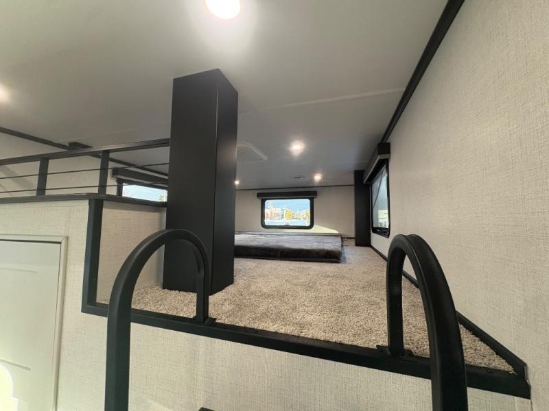 Get ready for family fun in this fifth wheel offering a front master bedroom with a king-size bed slide, plus a second master bedroom for your guests! The second bedroom includes a queen-size bed slide, a loft above the bedroom that sleeps three more, plus a rear full bathroom including a unique rear entry/exit door. And both entrances include the LCl SolidStep. The main living and kitchen area offers dual opposing slides and include theater seating, a free standing dinette, a fireplace, a center island and full kitchen amenities to feed your entire crew.