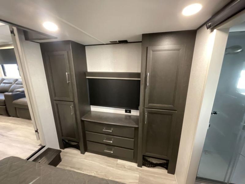 With any Keystone luxury Alpine Avalanche Edition fifth wheel, you will experience wide-body construction that allows you to stretch out and stay awhile during any season thanks to the Polar Pack All Season Protection that includes a heated and enclosed underbelly, an Astro foil reflective layer on the roof, front and rear walls, and two static attic vents, plus more! The interior offers hardwood slide out fascia with wood accents, designer upholstered window valances with custom wood window frame, plus your choice of modern interior design. There are many more Keystone exclusives, like the Tru-Fit slide construction, the in-floor heating ducts, KeyTV™, and much more to bring you a full-packed, luxury fifth wheel!