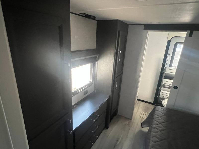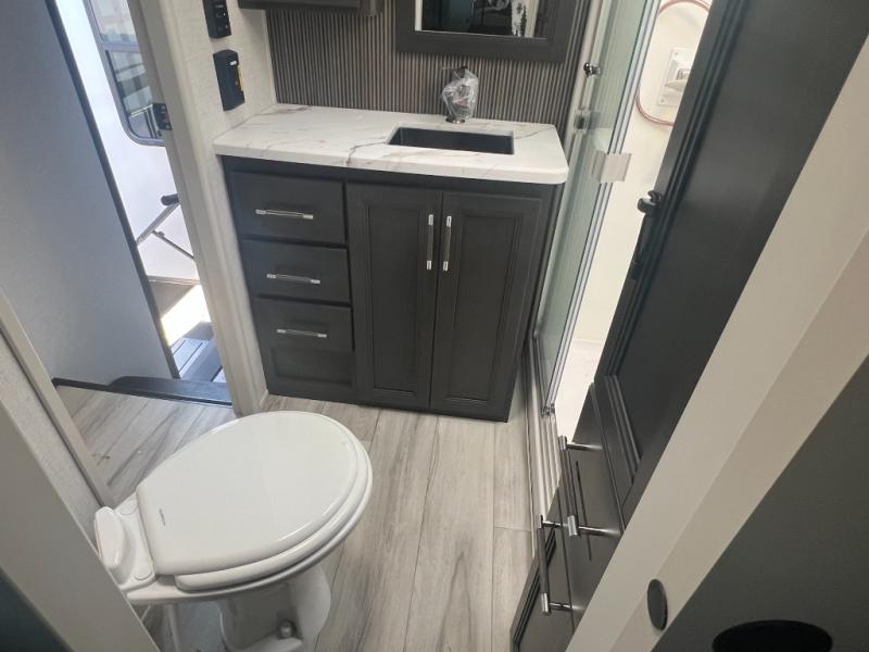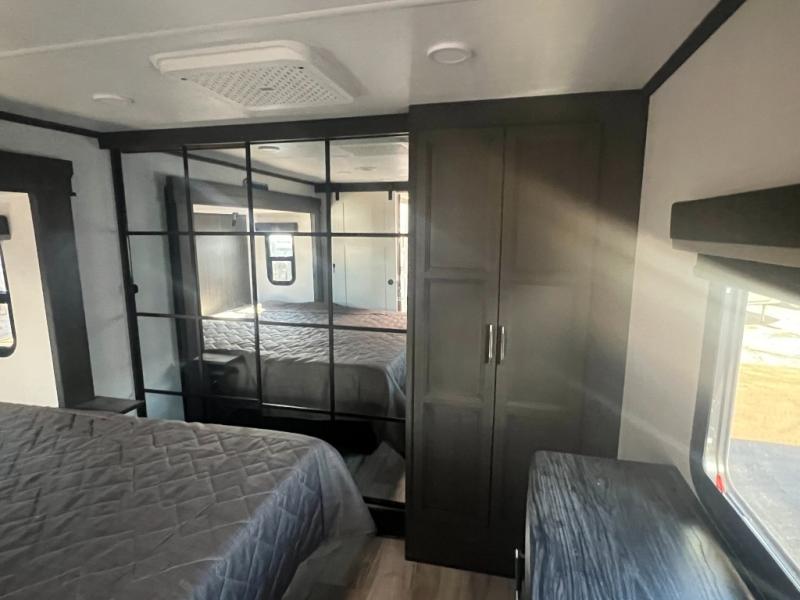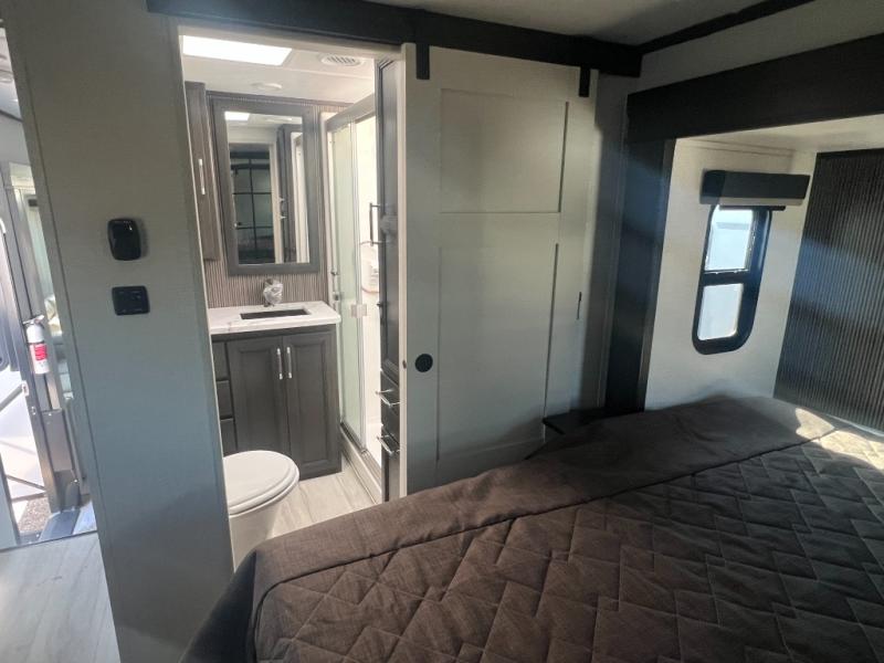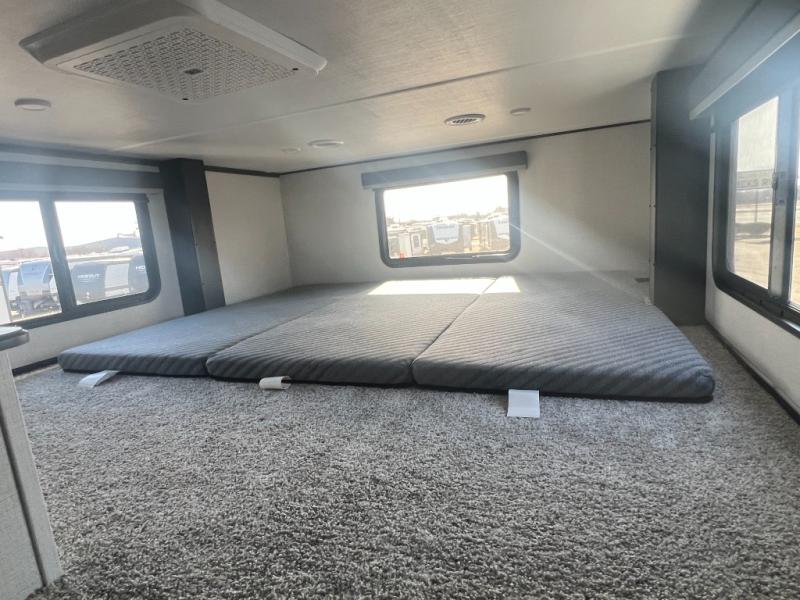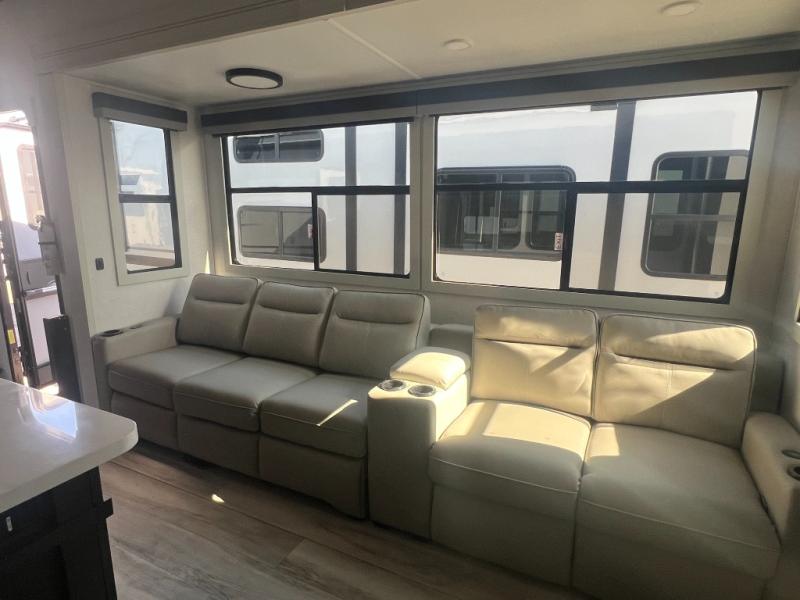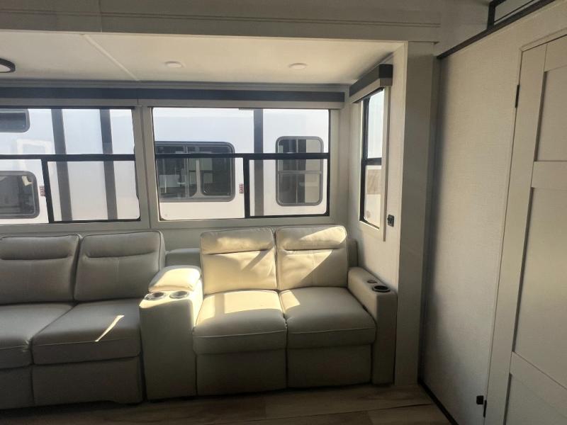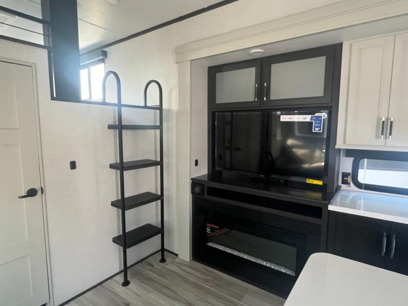 Get ready for family fun in this fifth wheel offering a front master bedroom with a king-size bed slide, plus a second master bedroom for your guests! The second bedroom includes a queen-size bed slide, a loft above the bedroom that sleeps three more, plus a rear full bathroom including a unique rear entry/exit door. And both entrances include the LCl SolidStep. The main living and kitchen area offers dual opposing slides and include theater seating, a free standing dinette, a fireplace, a center island and full kitchen amenities to feed your entire crew.