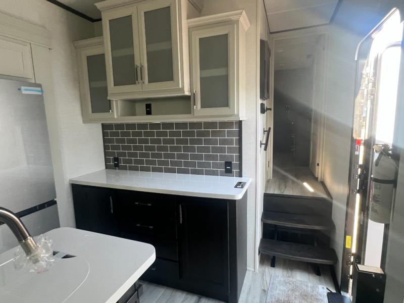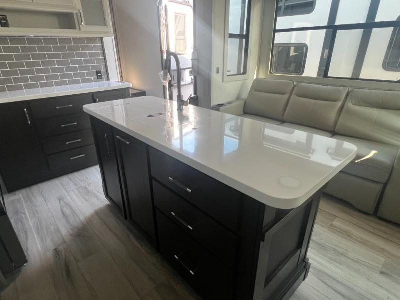 With any Keystone luxury Alpine Avalanche Edition fifth wheel, you will experience wide-body construction that allows you to stretch out and stay awhile during any season thanks to the Polar Pack All Season Protection that includes a heated and enclosed underbelly, an Astro foil reflective layer on the roof, front and rear walls, and two static attic vents, plus more! The interior offers hardwood slide out fascia with wood accents, designer upholstered window valances with custom wood window frame, plus your choice of modern interior design. There are many more Keystone exclusives, like the Tru-Fit slide construction, the in-floor heating ducts, KeyTV™, and much more to bring you a full-packed, luxury fifth wheel!