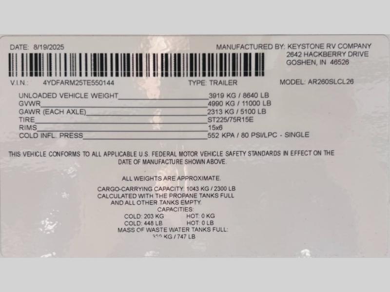 New 2026 Keystone RV Arcadia 260SLCL Fifth Wheel