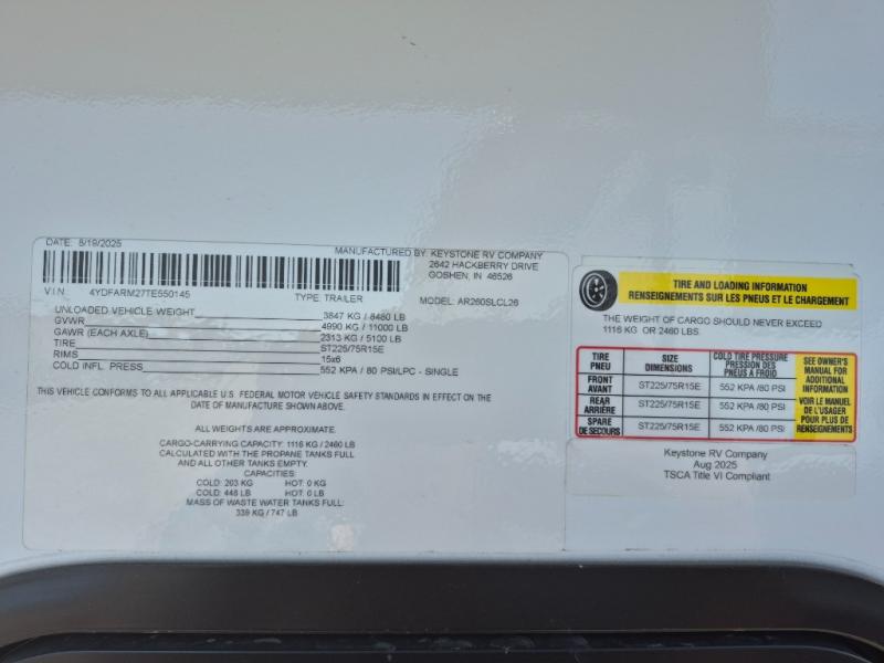 New 2026 Keystone RV Arcadia 260SLCL Fifth Wheel