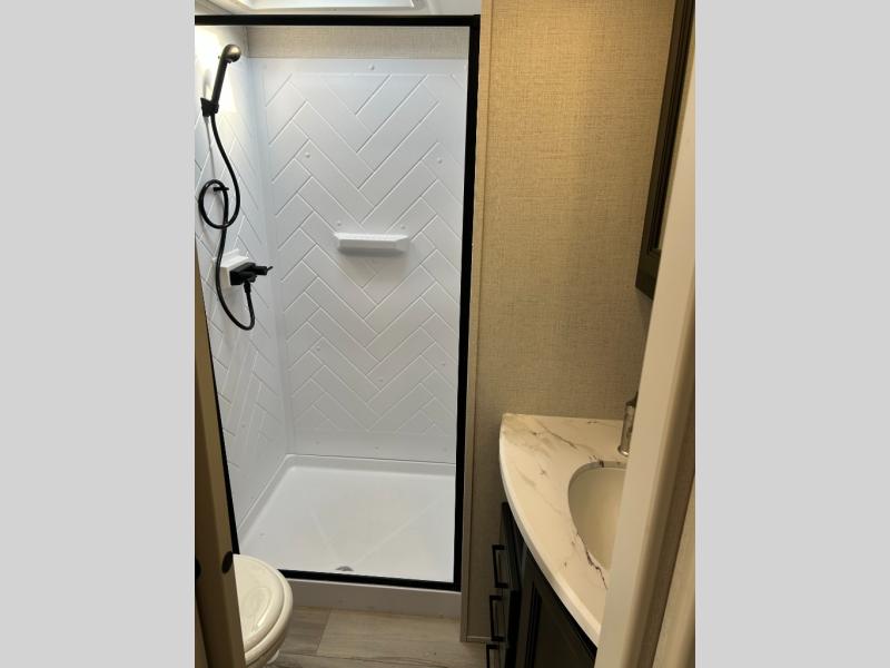 With any Arcadia Select fifth wheel by Keystone you will enjoy easy towability and at-home comforts at an affordable price! The laminated sidewalls with five sided aluminum superstructure will provide a strong foundation so you can enjoy your RV for years to come, plus a one-piece, heated and enclosed polypropylene underbelly means you can camp year around! And an upgraded Roto-Flex hitch pin will make it easy to tow. Head inside to find tall slides for added space, seamless, pressed countertops, convenient underbed storage, and a large shower with a retractable door and skylight. These fifth wheels also include a Blade Pure A/C system, Girard on-demand tankless water heater, two 30 lb. LP tanks, and more utilities to make your camping experience run smoothly.