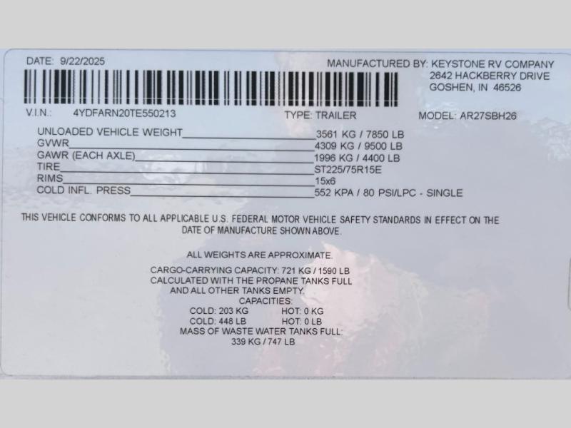 New 2026 Keystone RV Arcadia 27SBH Fifth Wheel