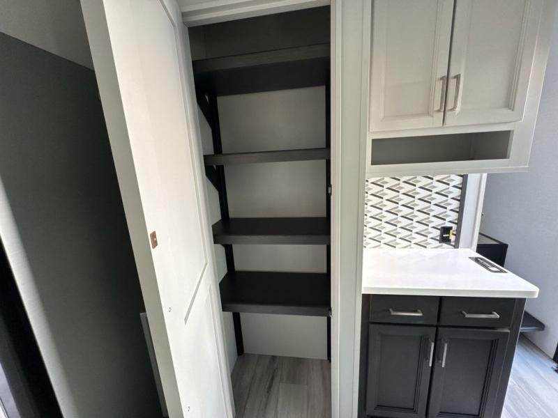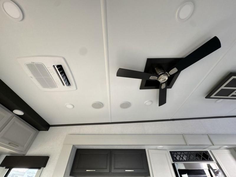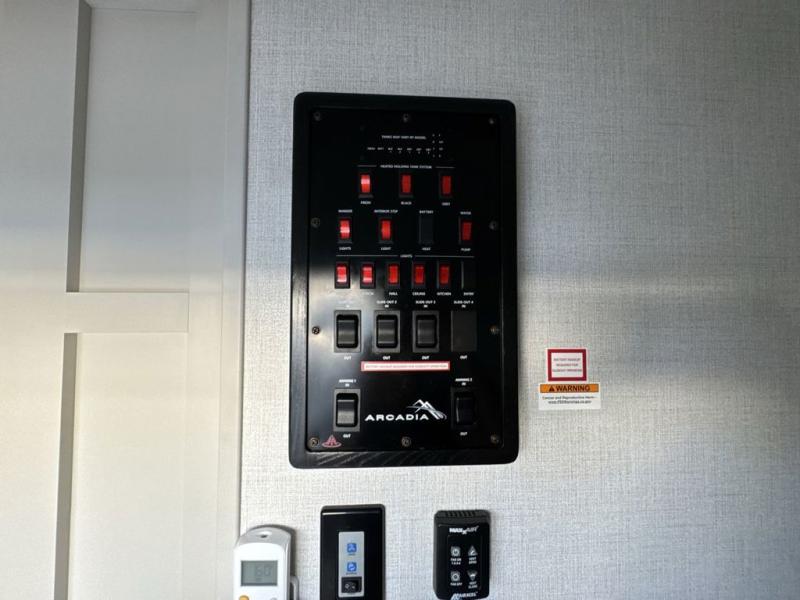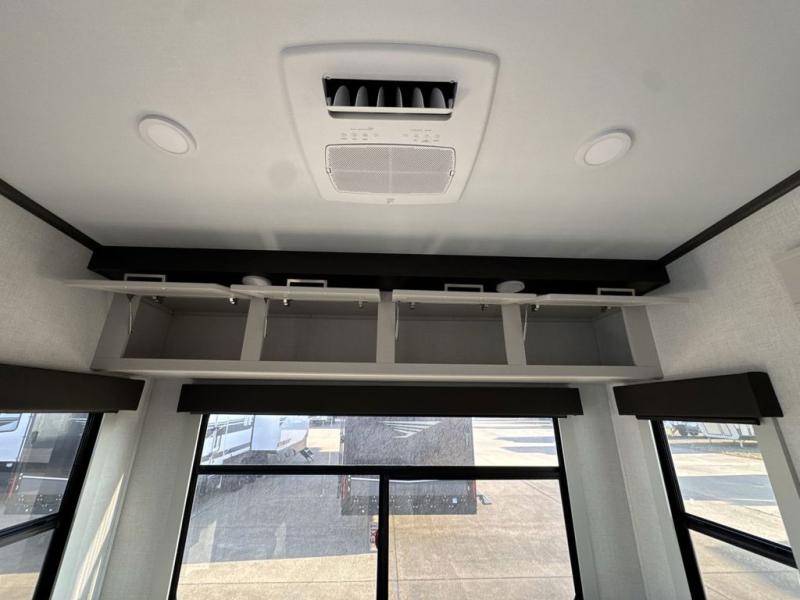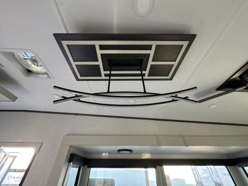 Each Arcadia full size fifth wheel by Keystone includes a Road Defense™ Powder Coated Chassis, a SpaceSaver upper deck design, and Greaseable suspension wet bolts with bronze bushings for a smooth towing experience. You will find abundant storage space throughout, black out roller shades, designer vinyl flooring throughout, and custom cabinetry with solid wood and painted cabinet doors. Each model includes the exclusive Blade Pure high-performance air handling system for increased A/C airflow, along with a 35K BTU high output furnace for added comfort. The Arcadia is constructed with fully laminated, aluminum framed one-piece sidewalls, an automotive-grade high-gloss fiberglass exterior, plus an automotive-grade fiberglass front cap with KeyShield protection to keep your fifth wheel looking sleek.