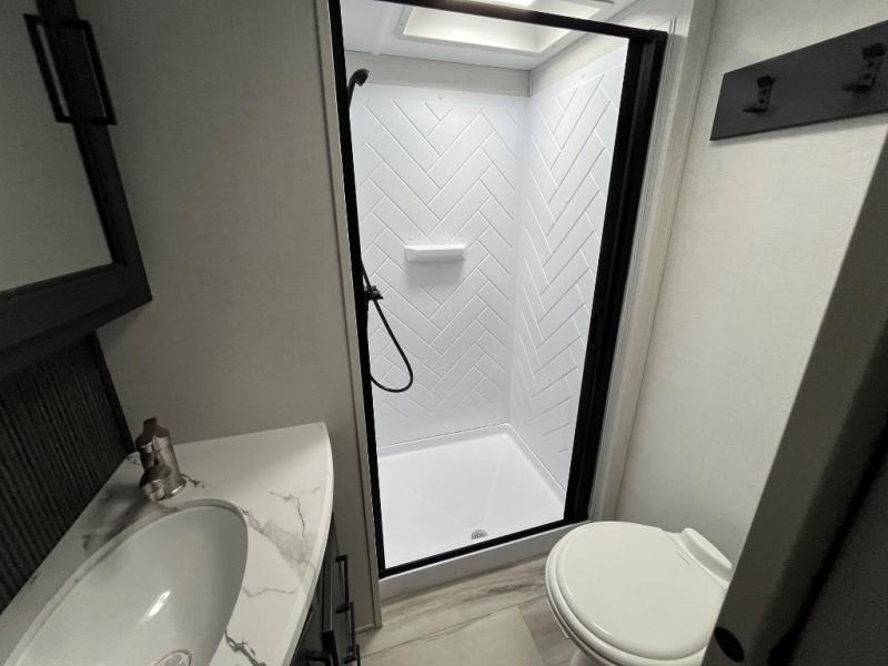 With any Arcadia Select fifth wheel by Keystone you will enjoy easy towability and at-home comforts at an affordable price! The laminated sidewalls with five sided aluminum superstructure will provide a strong foundation so you can enjoy your RV for years to come, plus a one-piece, heated and enclosed polypropylene underbelly means you can camp year around! And an upgraded Roto-Flex hitch pin with will make it easy to tow. Head inside to find tall slides for added space, seamless, pressed countertops, convenient underbed storage, and a large shower with a retractable door and skylight. These fifth wheels also include a Blade Pure A/C system, Girard on-demand tankless water heater, two 30 lb. LP tanks, and more utilities to make your camping experience run smoothly.
