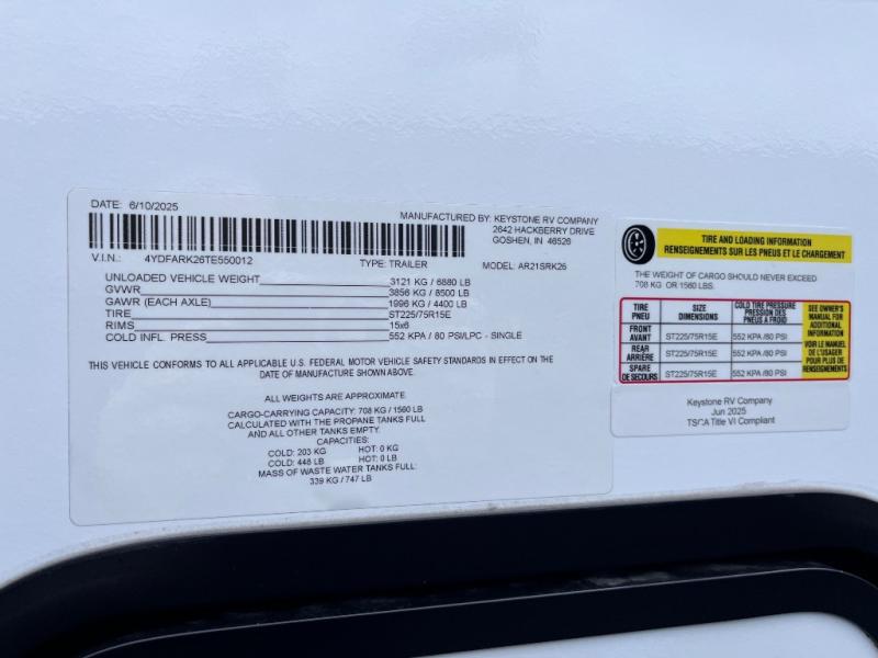 New 2026 Keystone RV Arcadia Select 21SRK Fifth Wheel
