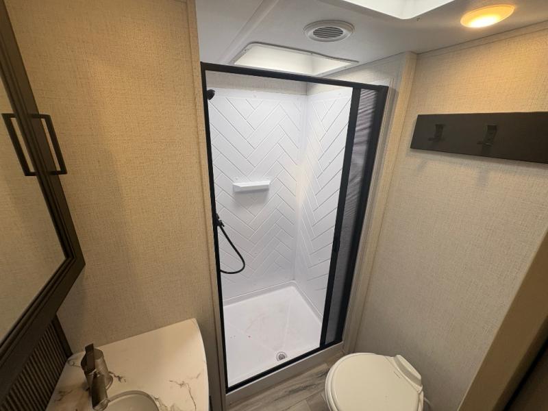 With any Arcadia Select fifth wheel by Keystone you will enjoy easy towability and at-home comforts at an affordable price! The laminated sidewalls with five sided aluminum superstructure will provide a strong foundation so you can enjoy your RV for years to come, plus a one-piece, heated and enclosed polypropylene underbelly means you can camp year around! And an upgraded Roto-Flex hitch pin with will make it easy to tow. Head inside to find tall slides for added space, seamless, pressed countertops, convenient underbed storage, and a large shower with a retractable door and skylight. These fifth wheels also include a Blade Pure A/C system, Girard on-demand tankless water heater, two 30 lb. LP tanks, and more utilities to make your camping experience run smoothly.