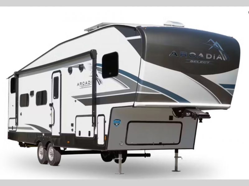 With any Arcadia Select fifth wheel by Keystone you will enjoy easy towability and at-home comforts at an affordable price! The laminated sidewalls with five sided aluminum superstructure will provide a strong foundation so you can enjoy your RV for years to come, plus a one-piece, heated and enclosed polypropylene underbelly means you can camp year around! And an upgraded Roto-Flex hitch pin with will make it easy to tow. Head inside to find tall slides for added space, seamless, pressed countertops, convenient underbed storage, and a large shower with a retractable door and skylight. These fifth wheels also include a Blade Pure A/C system, Girard on-demand tankless water heater, two 30 lb. LP tanks, and more utilities to make your camping experience run smoothly.