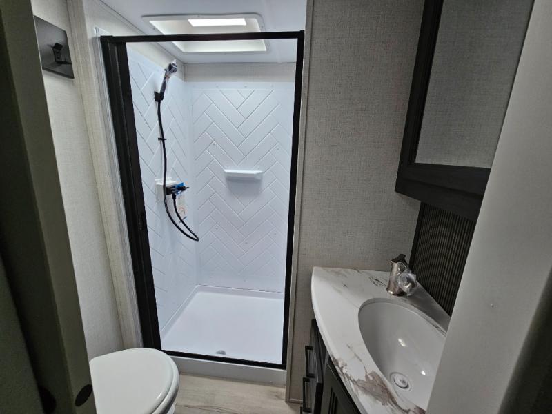 With any Arcadia Select fifth wheel by Keystone you will enjoy easy towability and at-home comforts at an affordable price! The laminated sidewalls with five sided aluminum superstructure will provide a strong foundation so you can enjoy your RV for years to come, plus a one-piece, heated and enclosed polypropylene underbelly means you can camp year around! And an upgraded Roto-Flex hitch pin with will make it easy to tow. Head inside to find tall slides for added space, seamless, pressed countertops, convenient underbed storage, and a large shower with a retractable door and skylight. These fifth wheels also include a Blade Pure A/C system, Girard on-demand tankless water heater, two 30 lb. LP tanks, and more utilities to make your camping experience run smoothly.