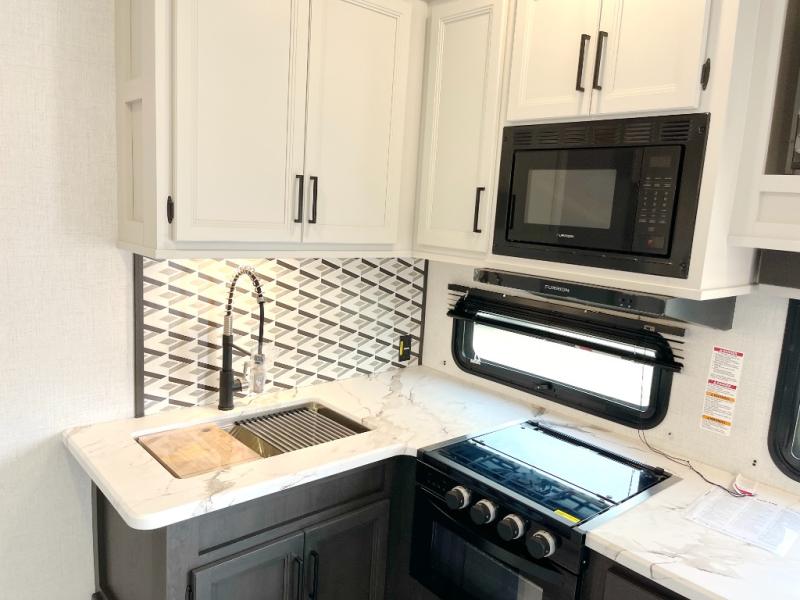 With any Arcadia Select fifth wheel by Keystone you will enjoy easy towability and at-home comforts at an affordable price! The laminated sidewalls with five sided aluminum superstructure will provide a strong foundation so you can enjoy your RV for years to come, plus a one-piece, heated and enclosed polypropylene underbelly means you can camp year around! And an upgraded Roto-Flex hitch pin with will make it easy to tow. Head inside to find tall slides for added space, seamless, pressed countertops, convenient underbed storage, and a large shower with a retractable door and skylight. These fifth wheels also include a Blade Pure A/C system, Girard on-demand tankless water heater, two 30 lb. LP tanks, and more utilities to make your camping experience run smoothly.