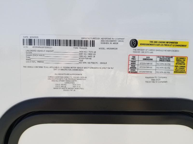 New 2026 Keystone RV Arcadia Select 25SRD Fifth Wheel